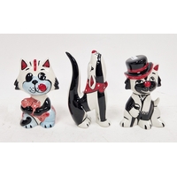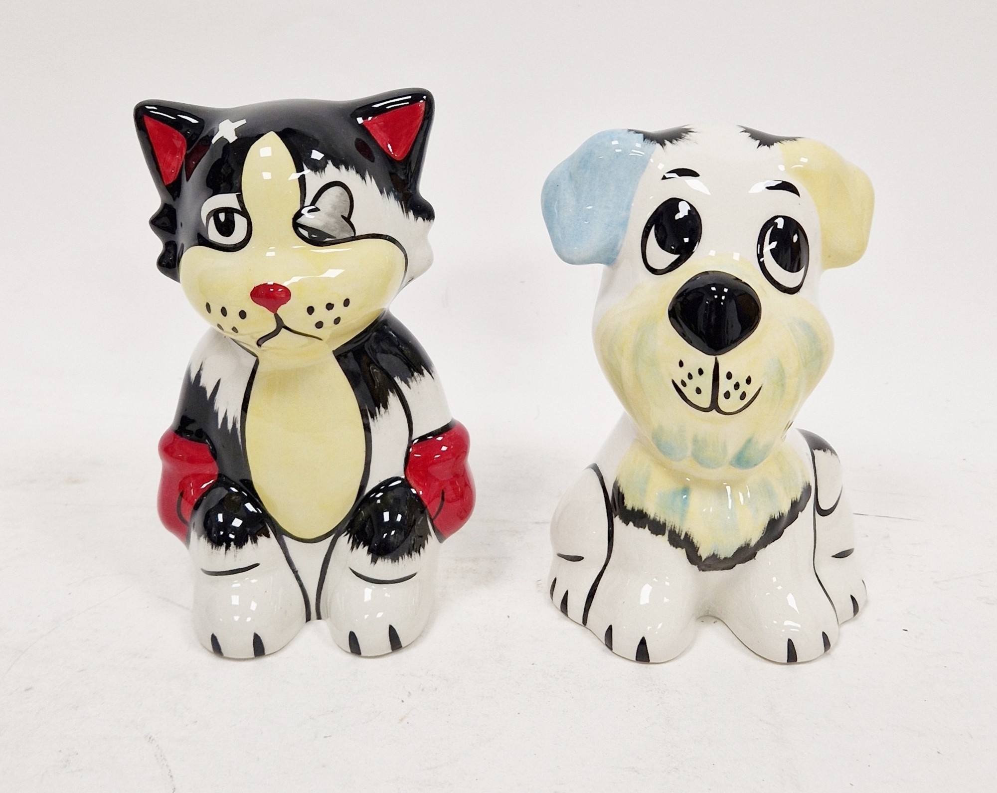 Lorna Bailey model of a cat and a dog, each signed in black enamel, comprising Boxer Cat and Woof Woof, 14cm high max (2)