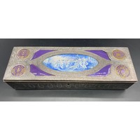 Modern marquetry decorated oval jewellery box with a large collection of modern silver, gem set and other jewellery