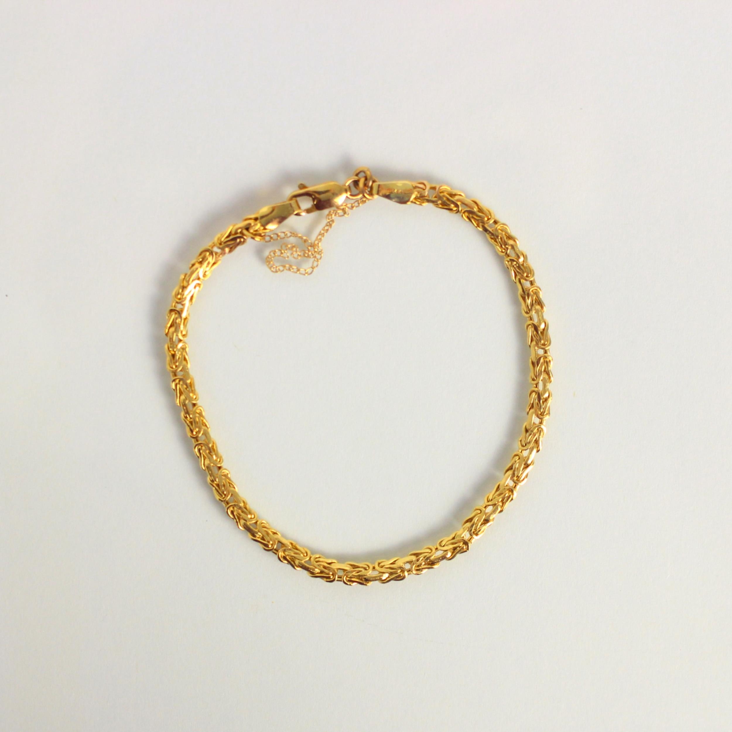 An Italian yellow metal bracelet, the flat fancy link bracelet with lobster fastener stamped 'Italy 14k' approx 18cm long, 3.5gms