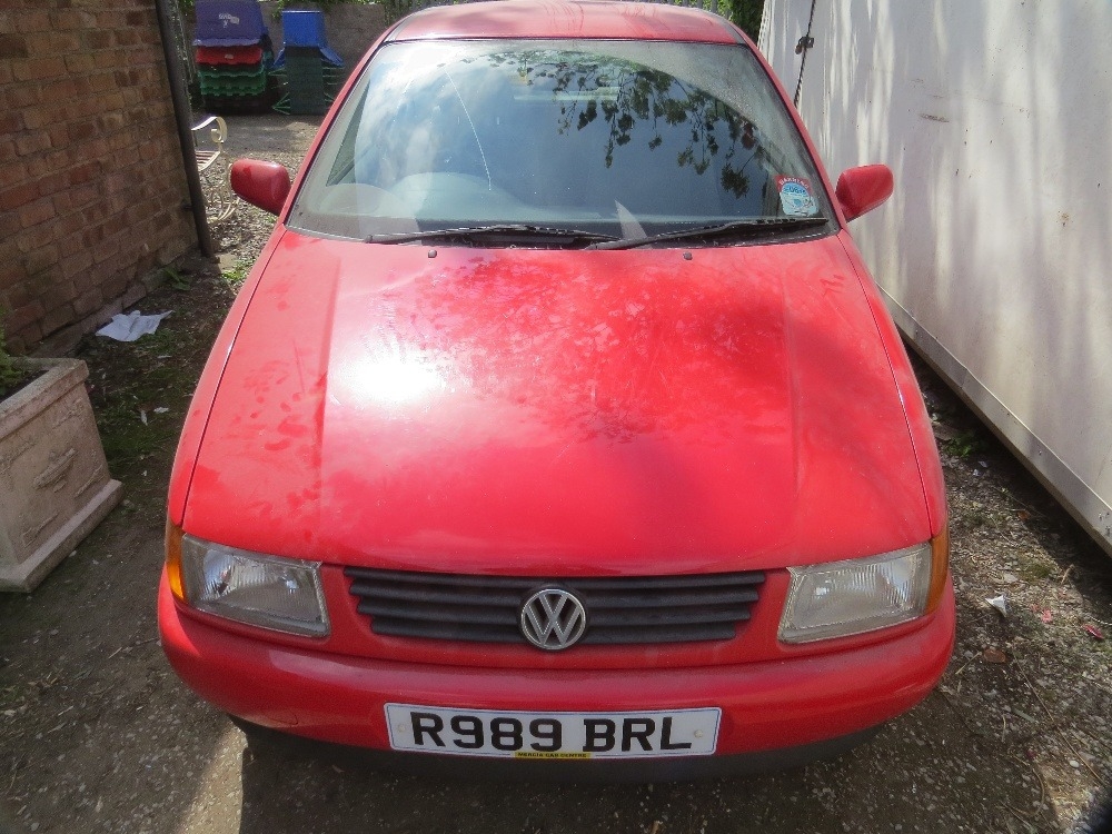 A 1998 red 1.9L diesel Volkswagen Polo, MOT expired 2020, one key, no logbook, showing as 70,242 miles last MOT 19/11/2019 - House Clearance