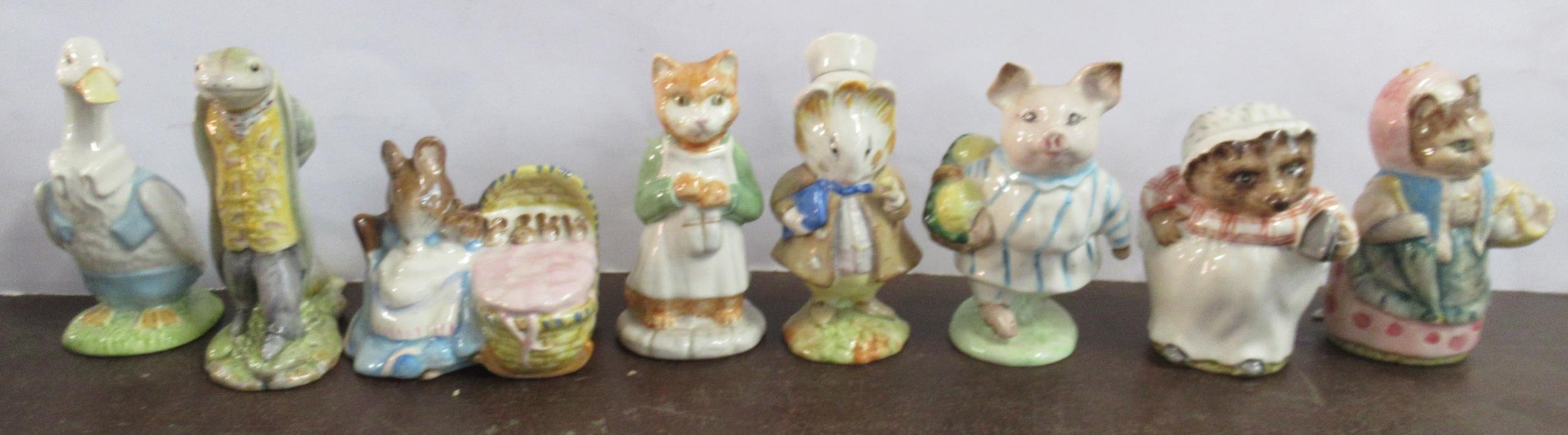 8 Beswick Beatrix Potter figures to include Sir Issac Newton , Ginger, Mr Drake Puddle Duck etc