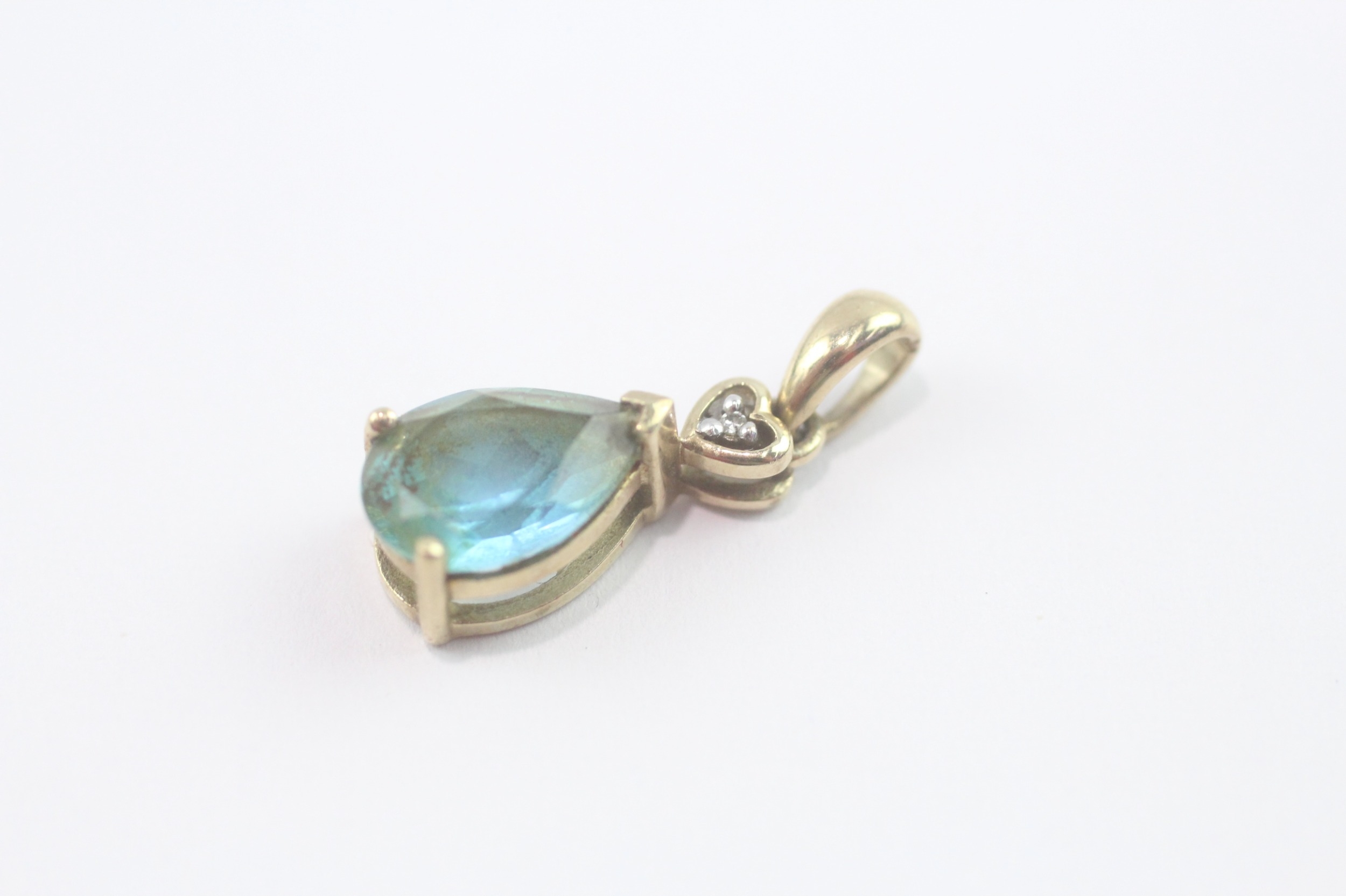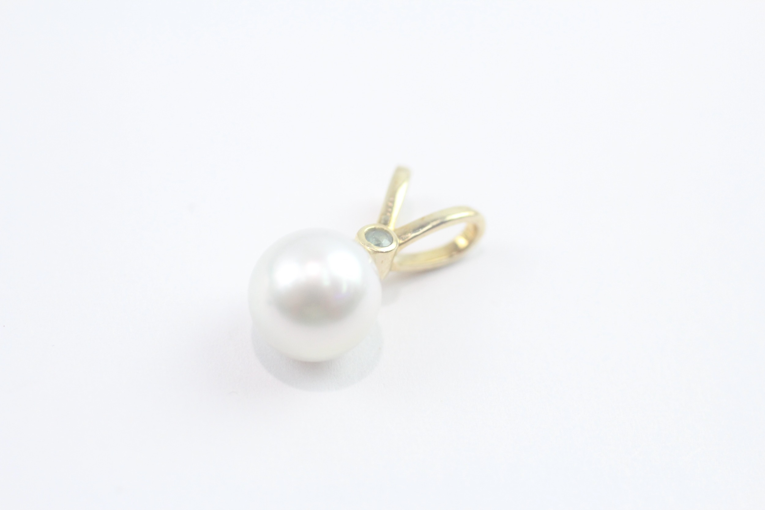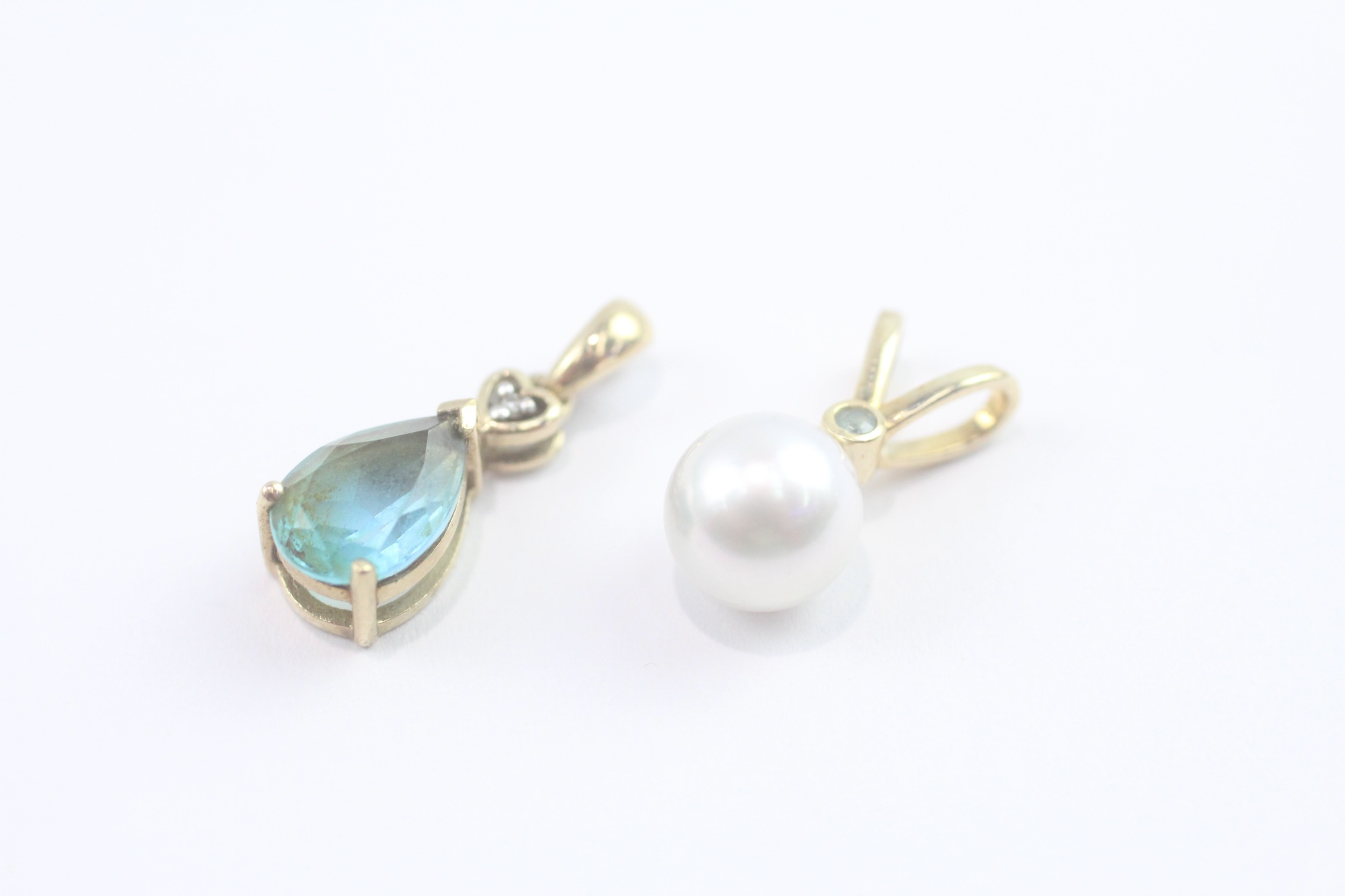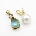2x 9ct gold cultured pearl, emerald, topaz & diamond pendants (2.9g)