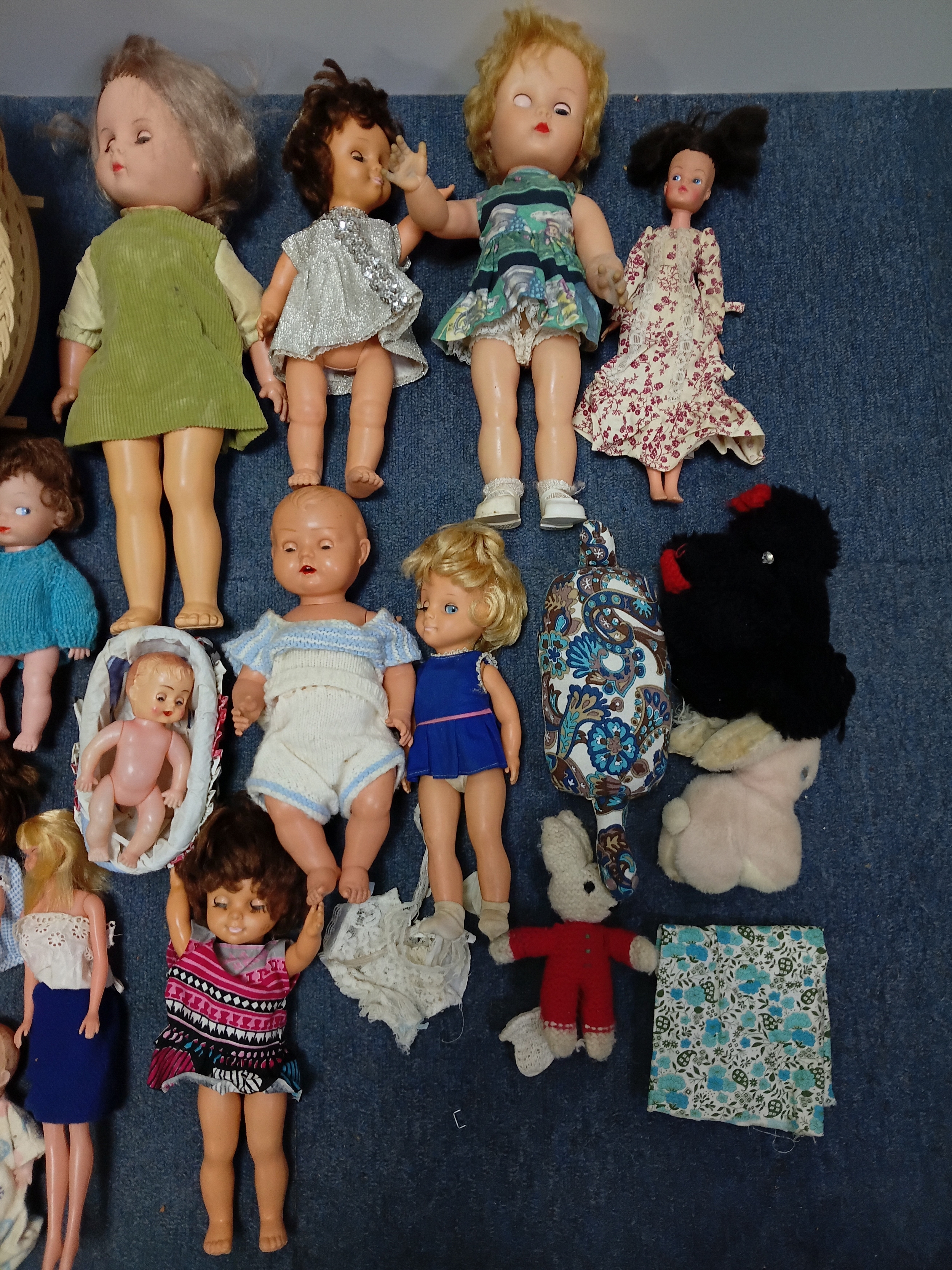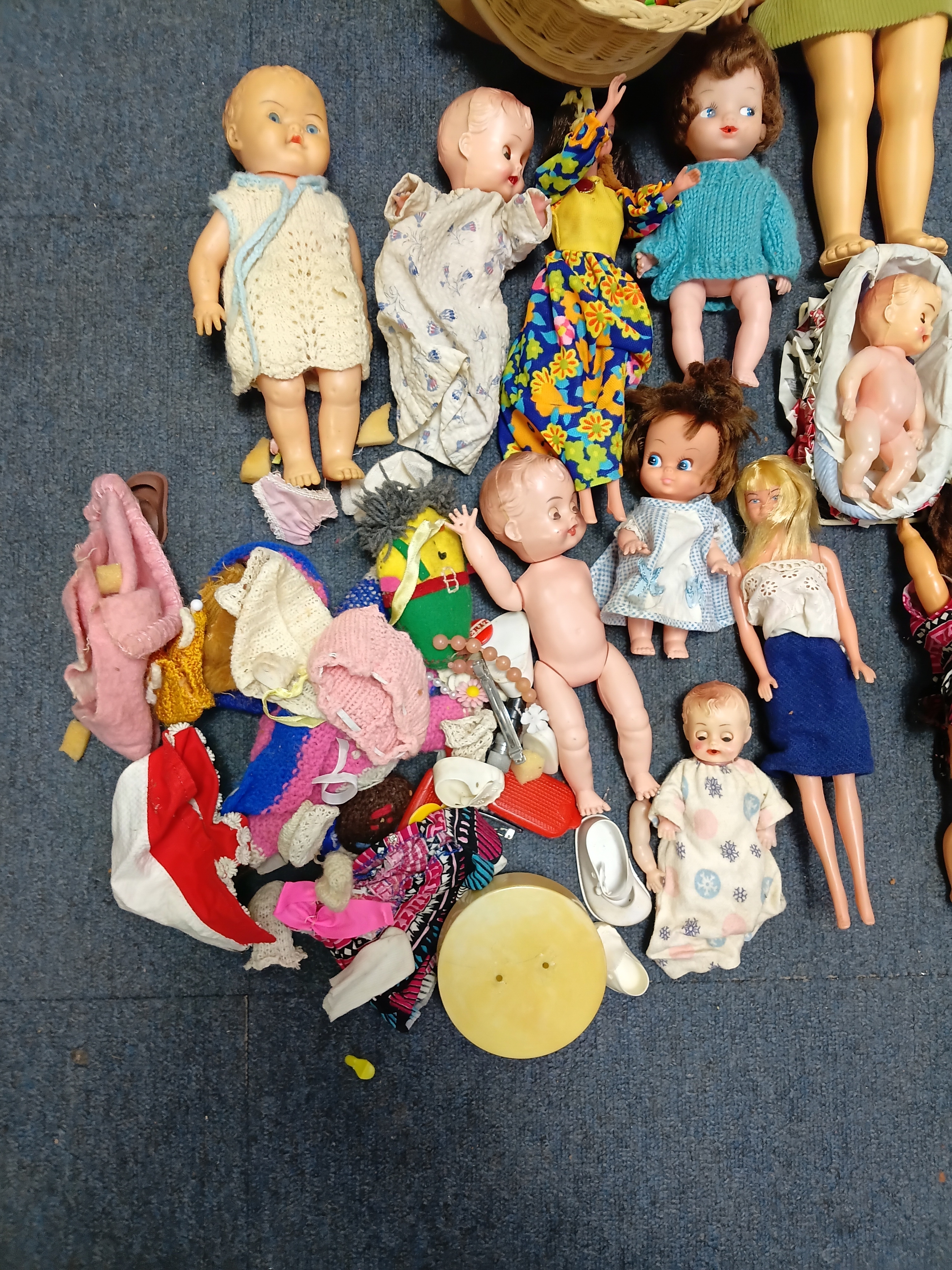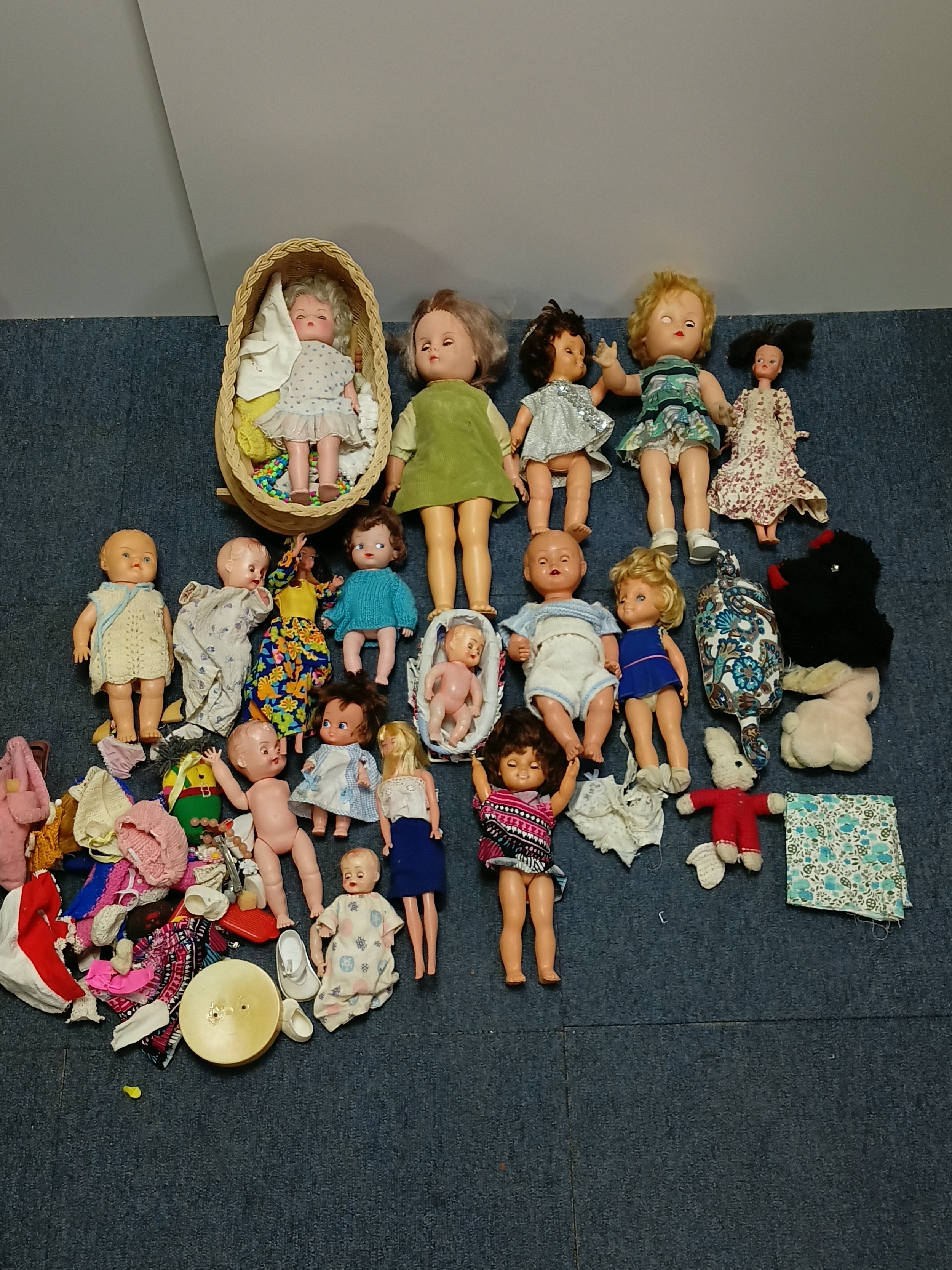 A job lot of dolls and barbies with accessories such as clothes, shoes, hairclips and more.