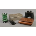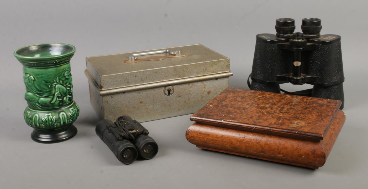 An assortment of collectables, to include Zenith 12x50 field binoculars, Sylvac vase and money tin.