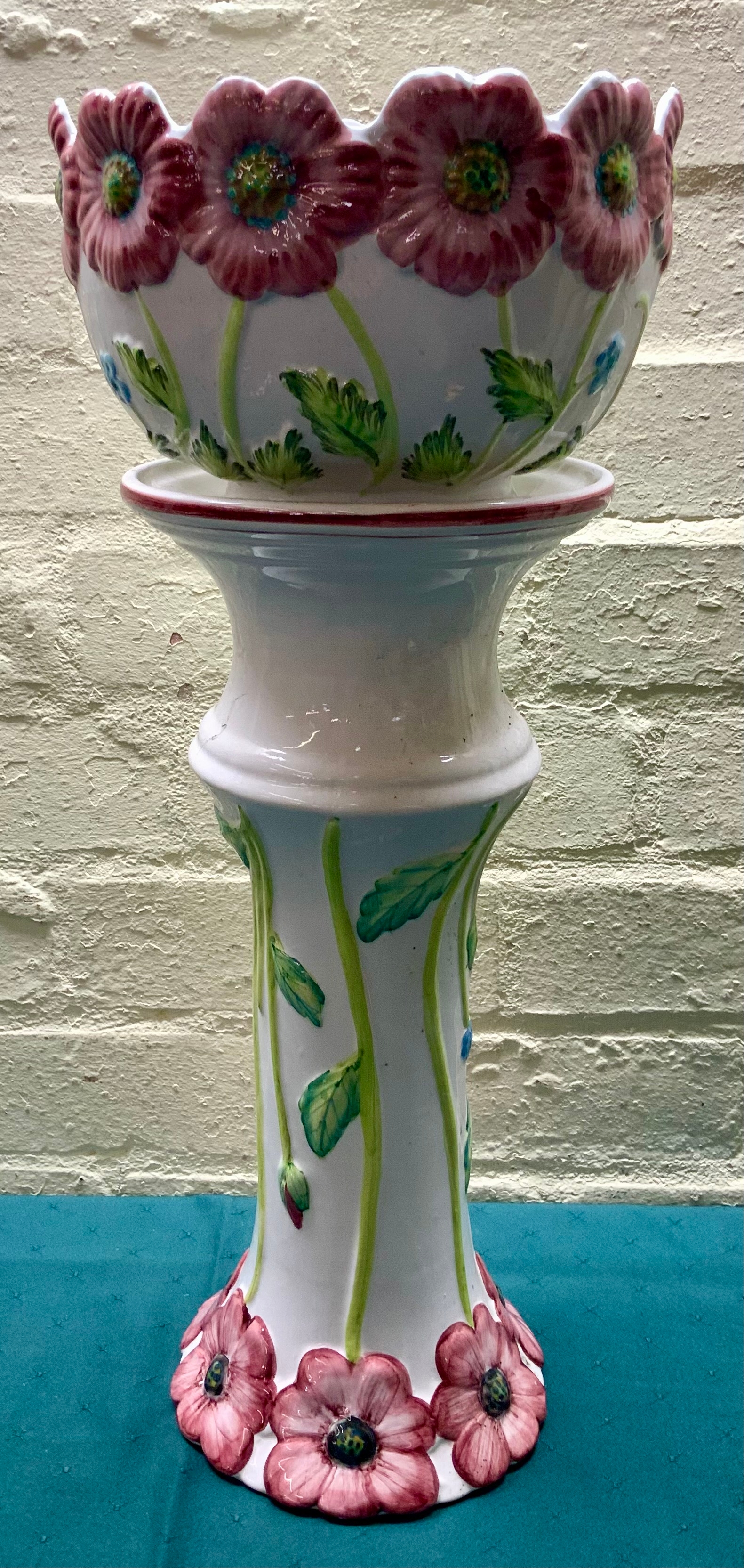 A WHITE CERAMIC JARDINIERE DECORATED WITH FLOWERS 53CM H