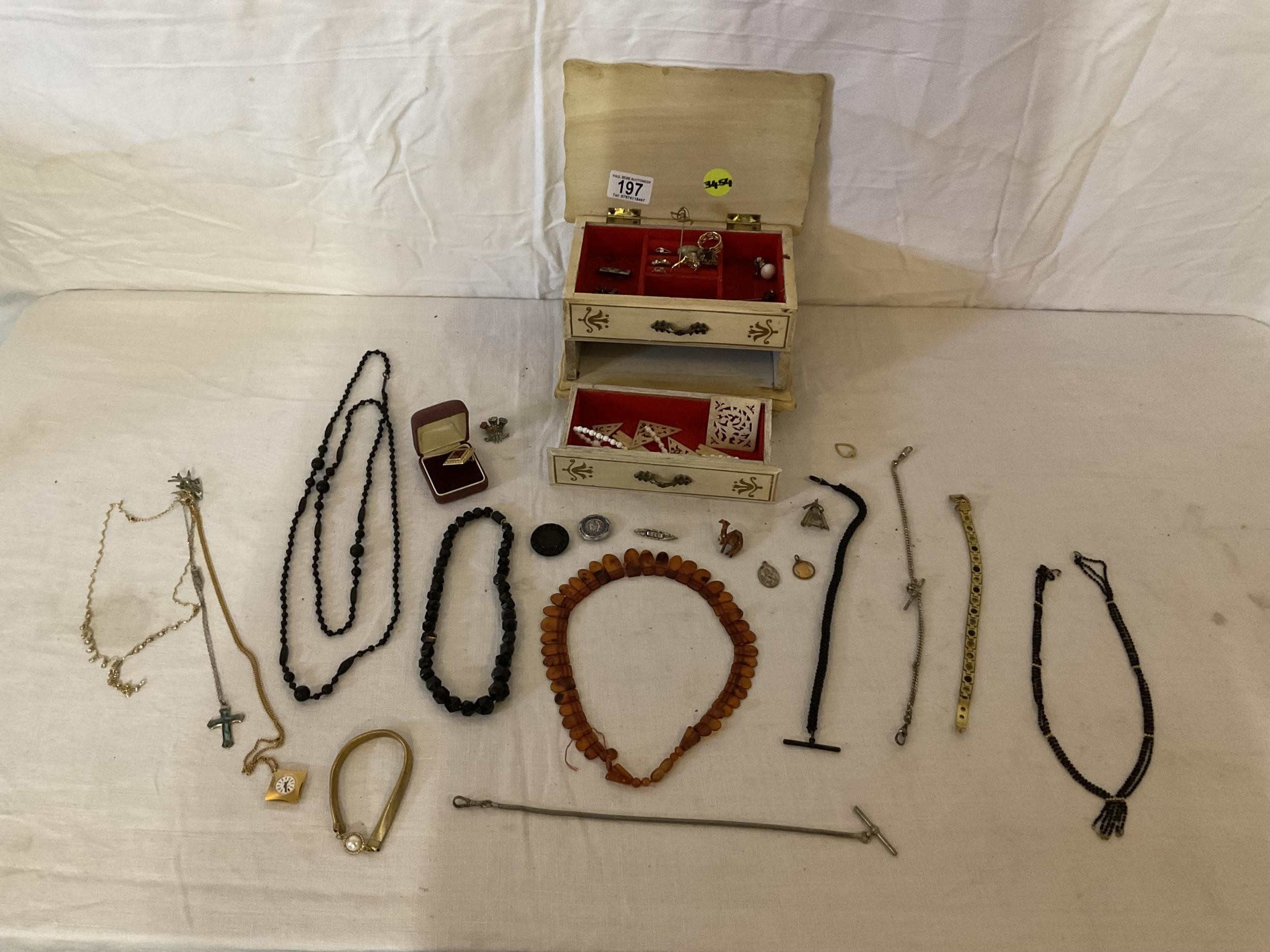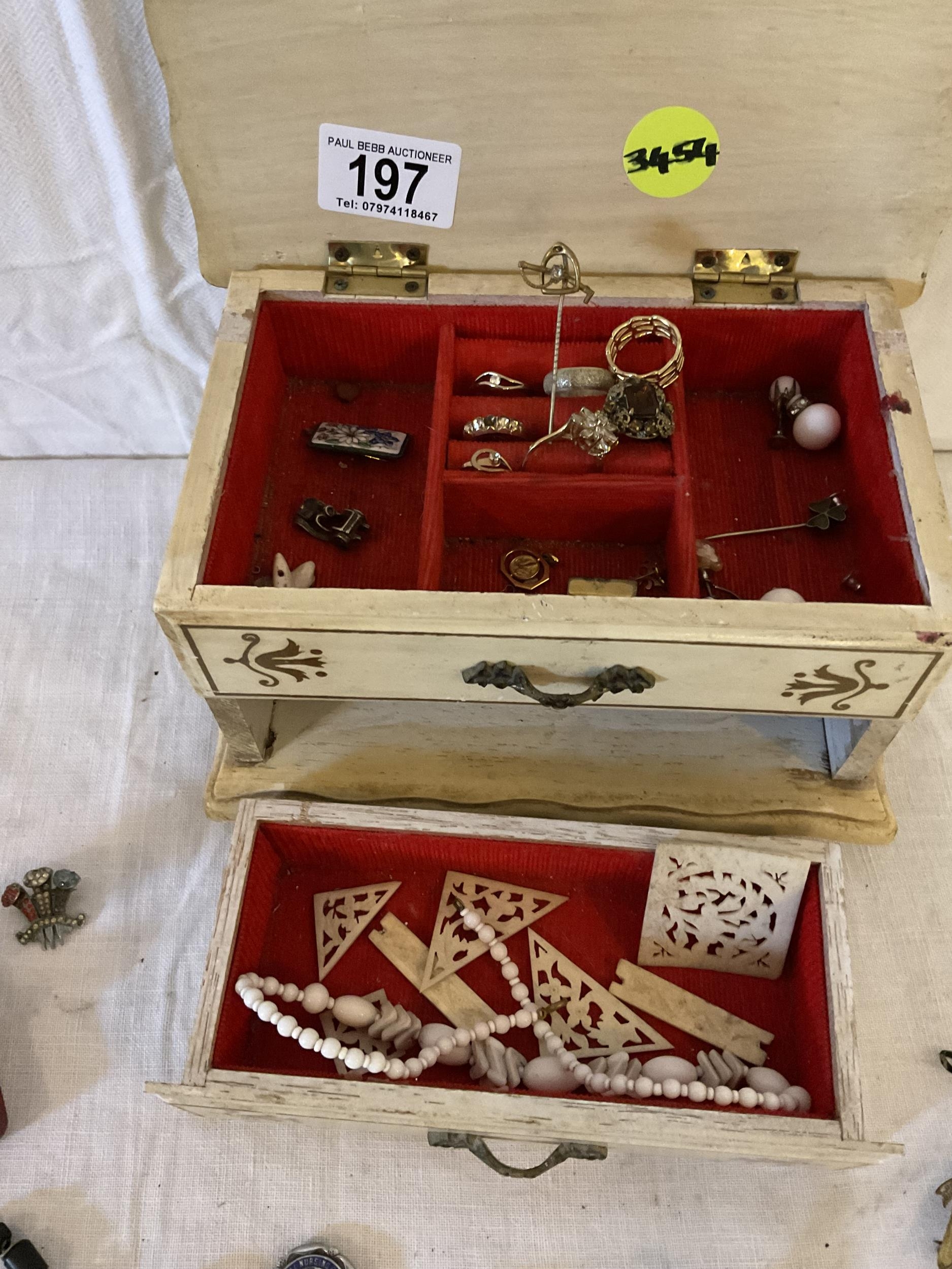 JEWELLERY BOX AND COSTUME JEWELLERY TO INCLUDE A CHRISTIAN DIOR BROOCH ETC