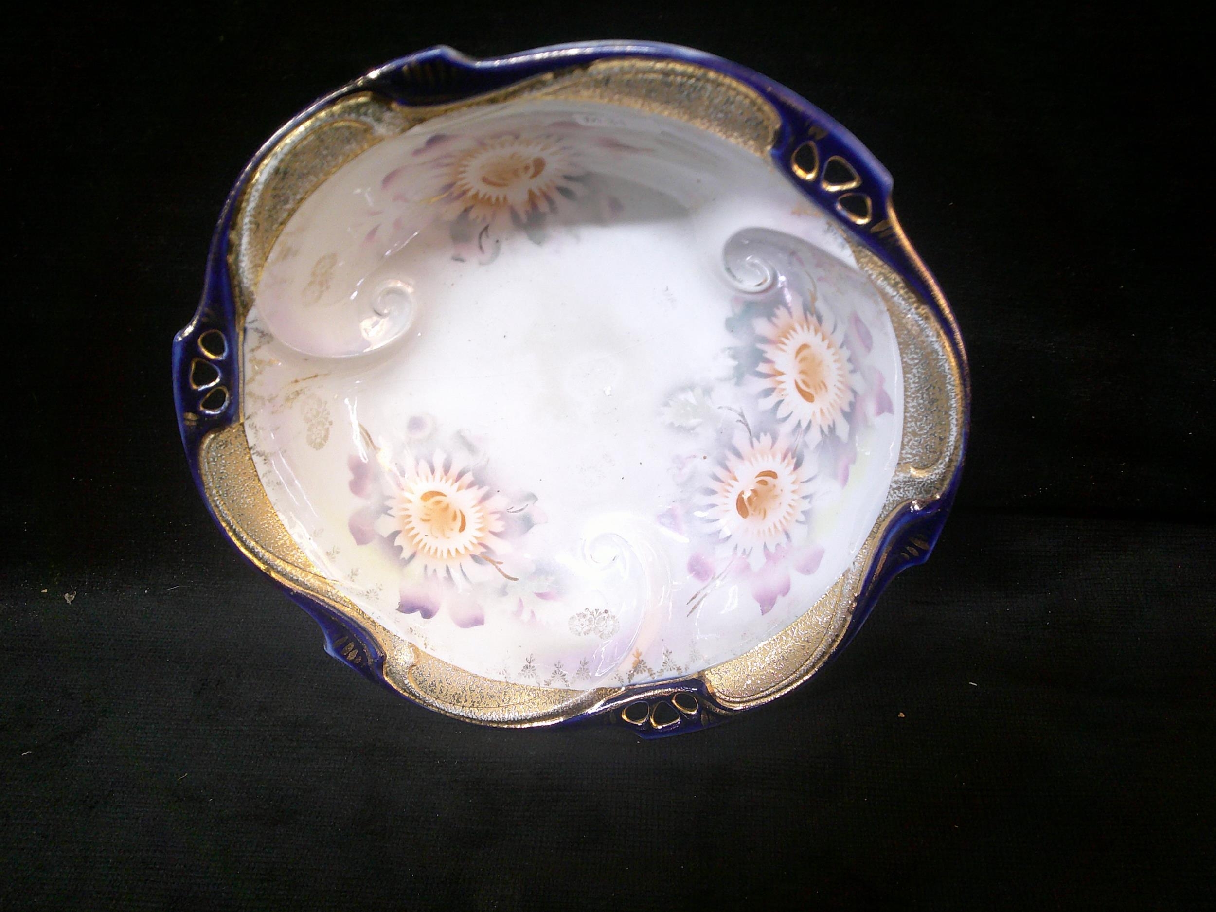Decorative pottery bowl, damaged 25cm