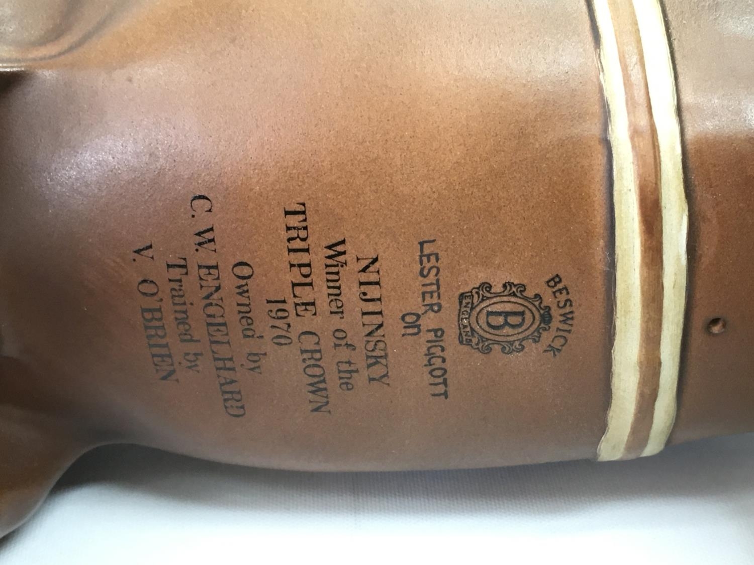A Beswick Nijinsky Winner of the Triple crown 1970 ceramic figure. 33cm tall 32cm long. This lot cannot be posted