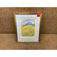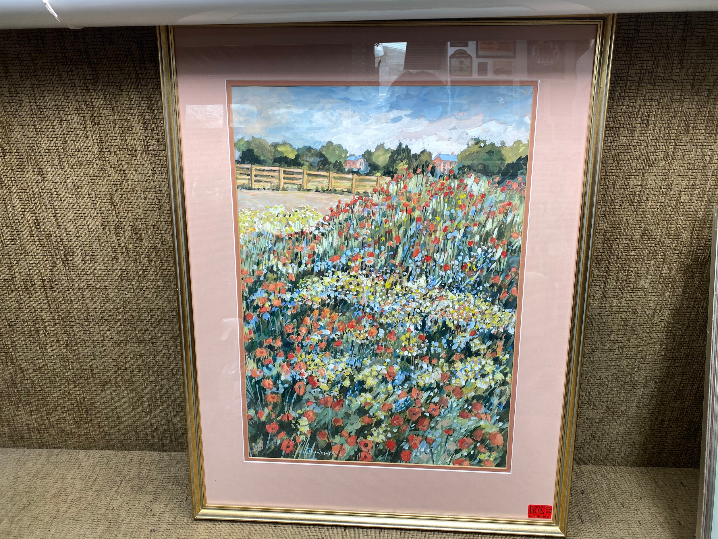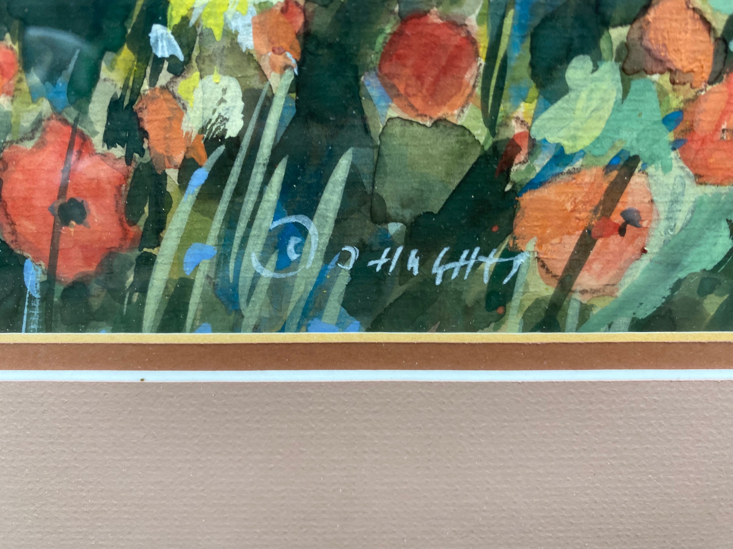Stunning Framed Watercolour showing a field of flowers By Welsh Artist Olwen Hughes MBE 82cm x 62cm.