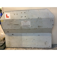 TWO VINTAGE FOLDING TRESTLE TABLES ON METAL SUPPORTS