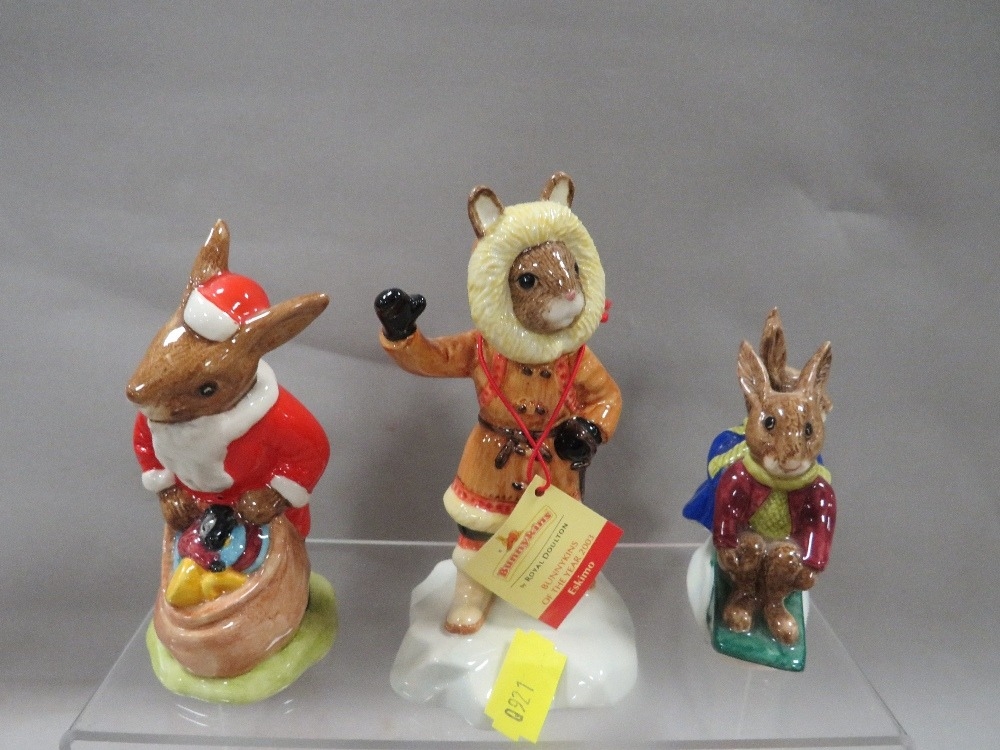 Six Royal Doulton Bunnykins Winter themed figures to include "Eskimo and Girl Skater"