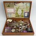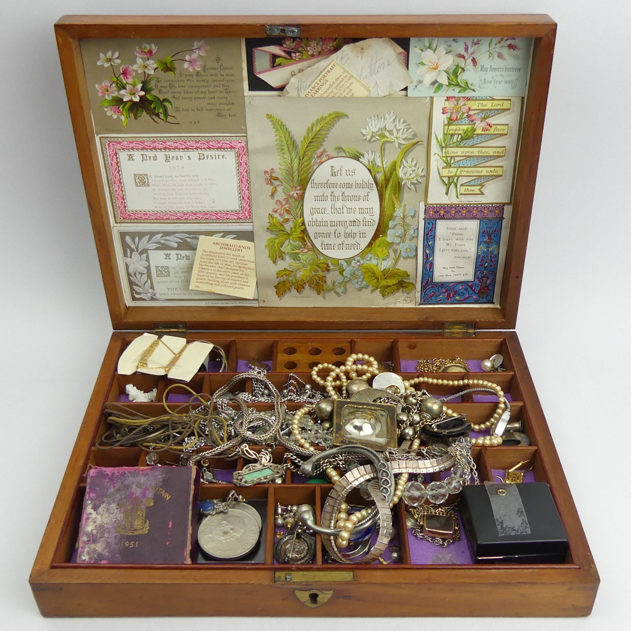 A box of costume and other jewellery including a 9ct gold locket and chain, UK Postage £18