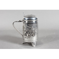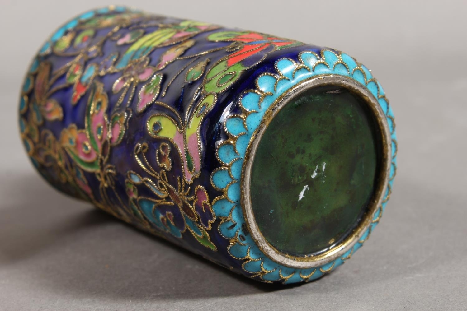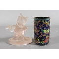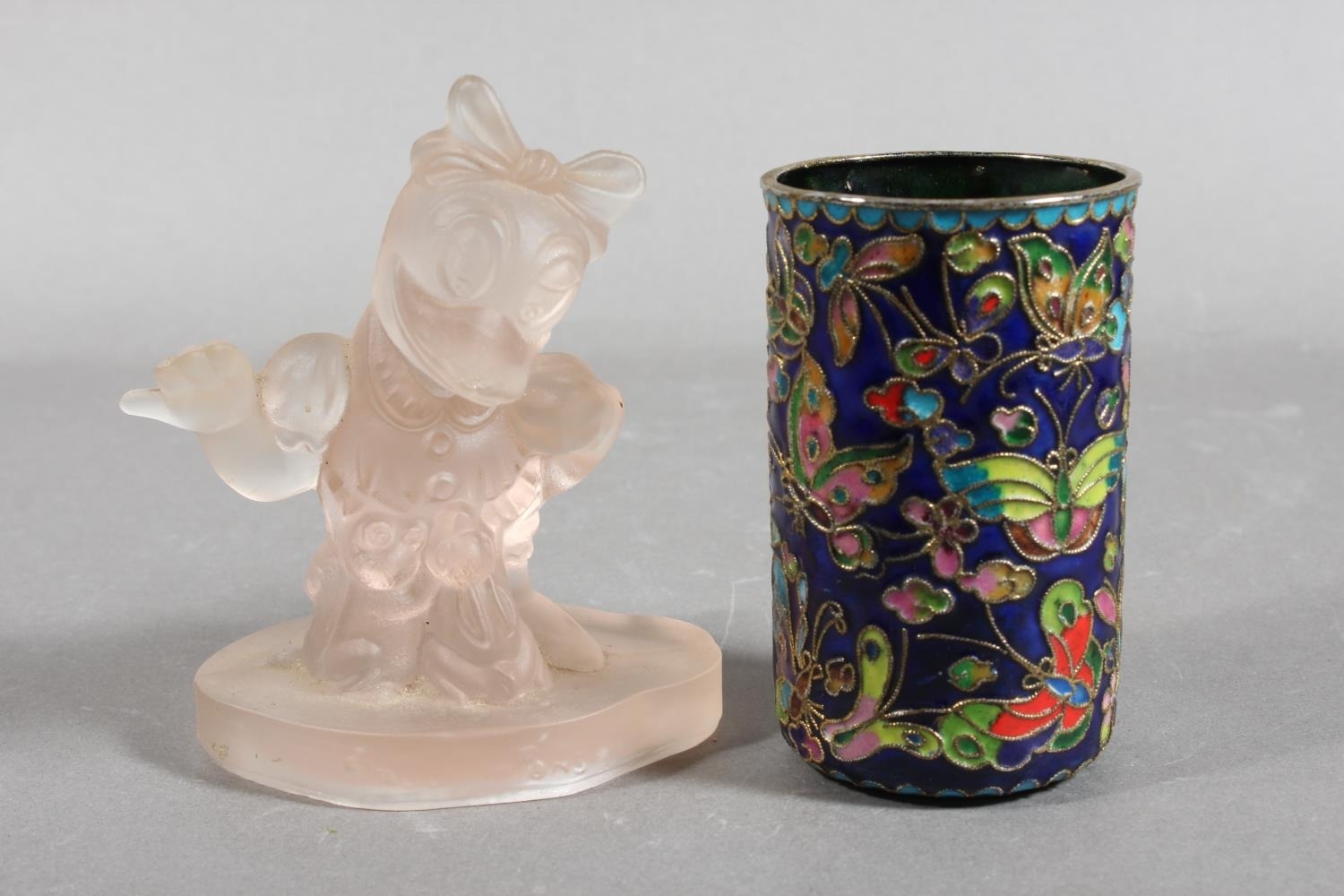 Chinese enamelled beaker cup with insect decoration, 9.5cm high and a frosted glass Walt Disney paperweight model of a duck with two bunnies. (2)