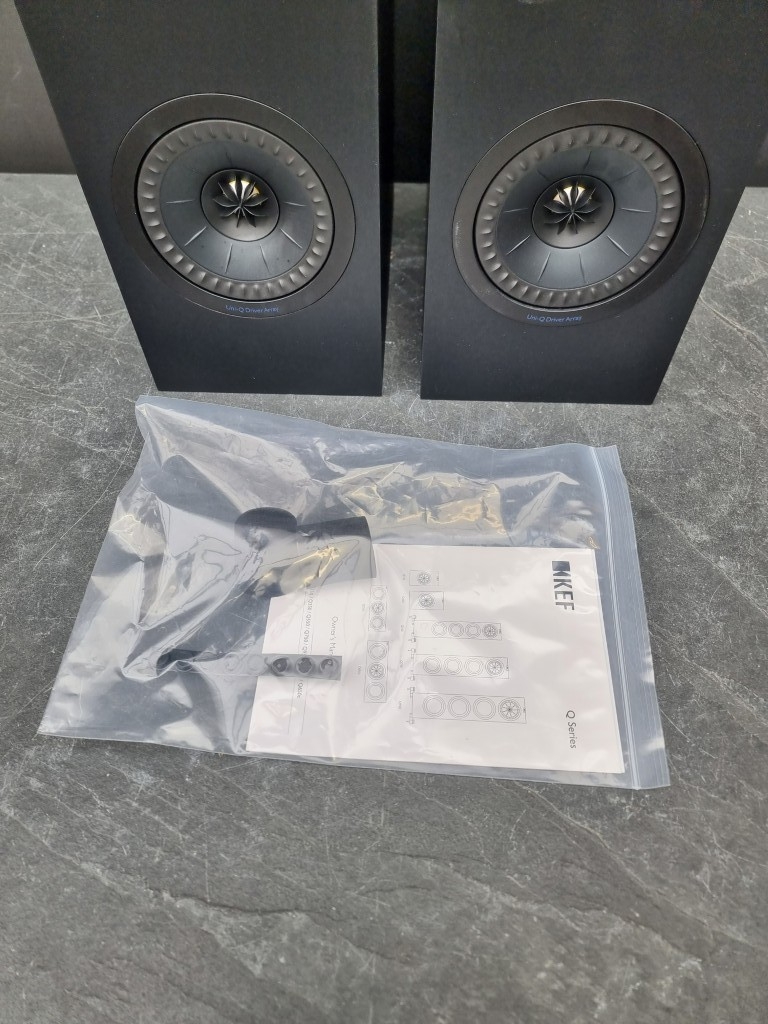 Hi-Fi: a pair of KEF 'Q150' passive bookshelf speakers, model No.SP3958, with wall mounting brackets and owner's manual.