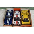 3 X BBURAGO DIECAST MODEL CARS - BLUE VIPER DODGE GTS COUPE, FORD FOCUS & YELLOW LAMBORGHINI COUNTACH