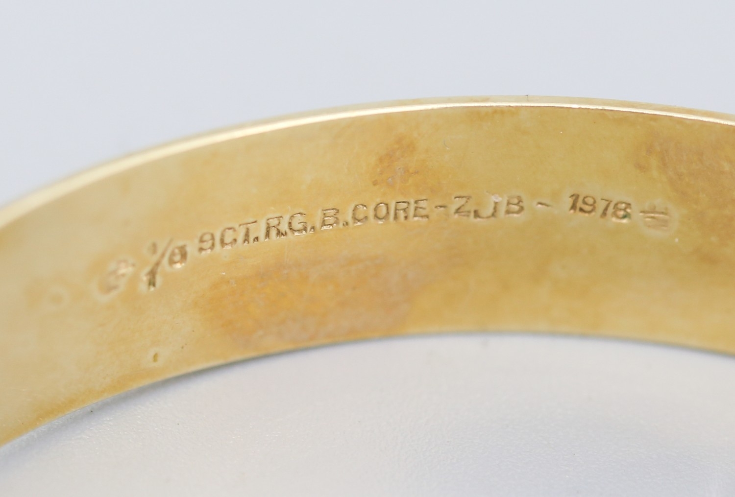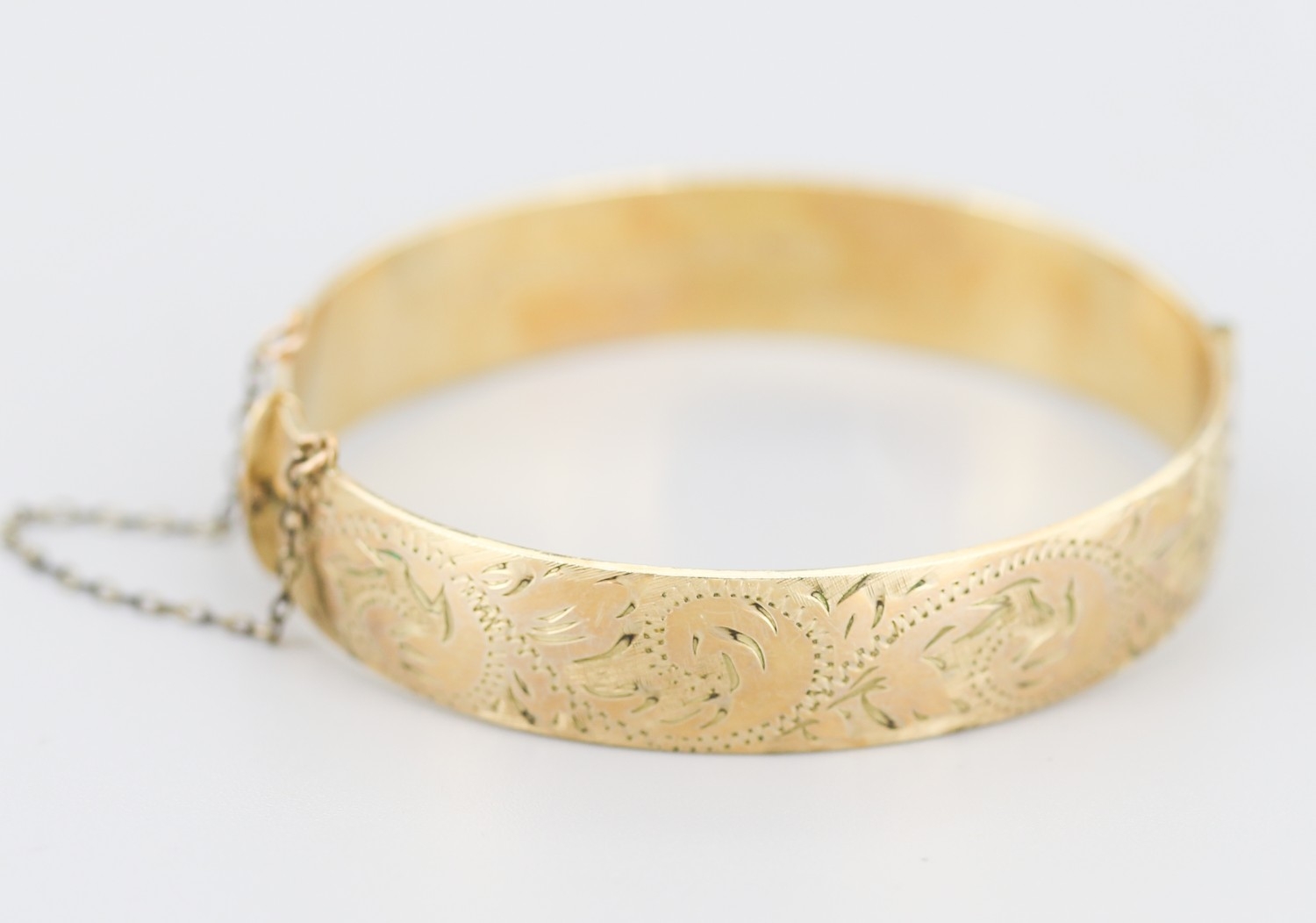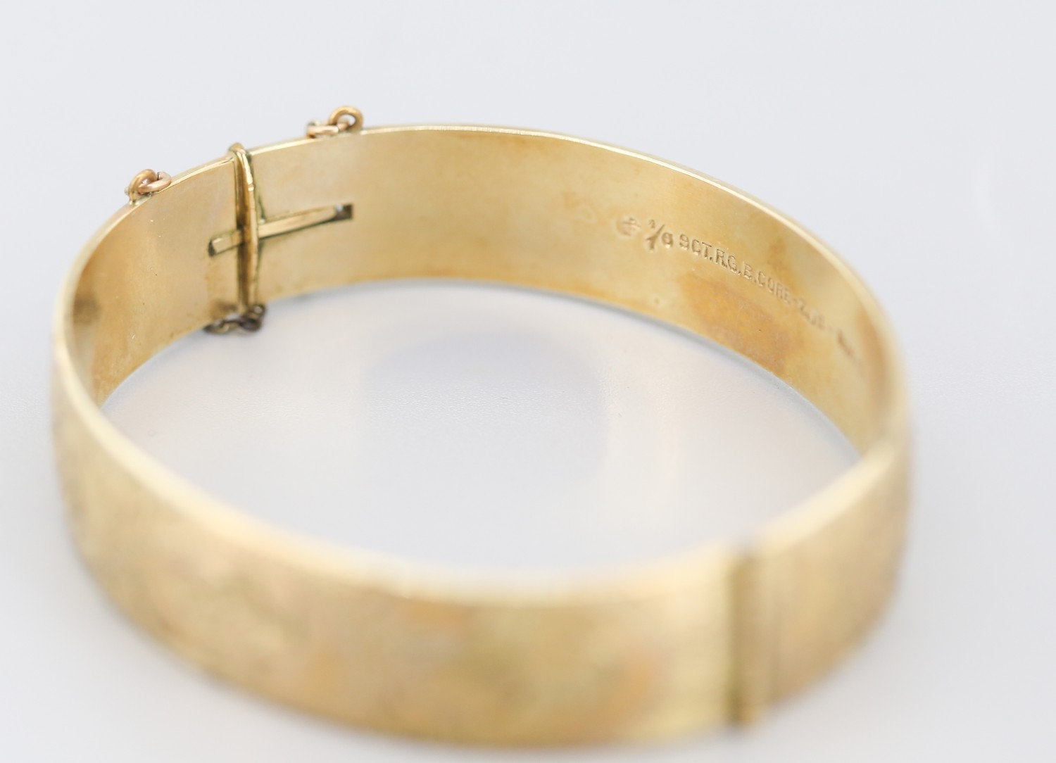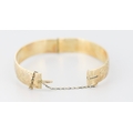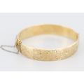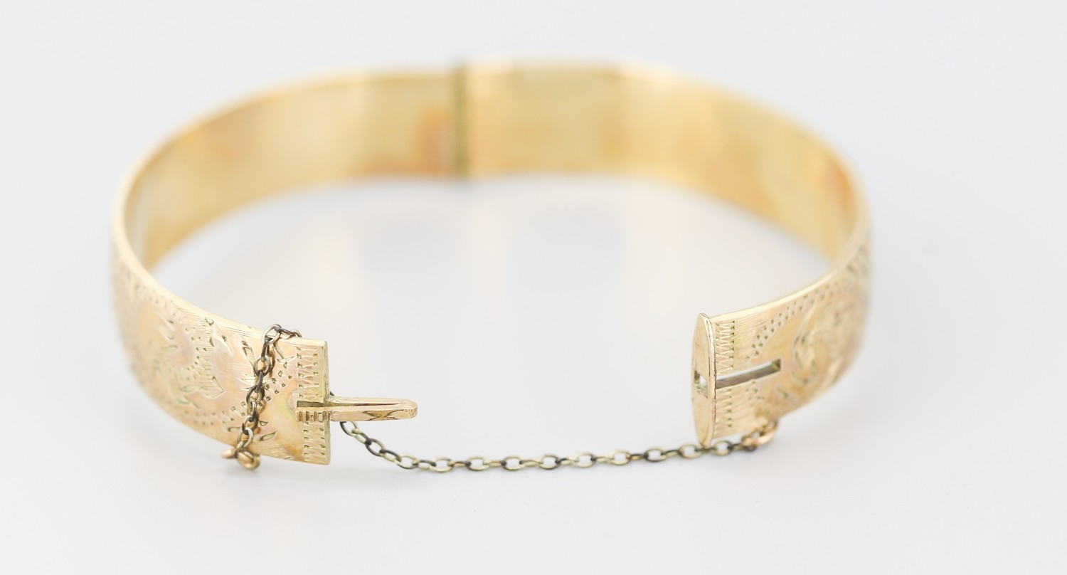 1/10 9 Carat Yellow Gold Bronze Core Bangle Bracelet Incised Detail Inner Width 6cm