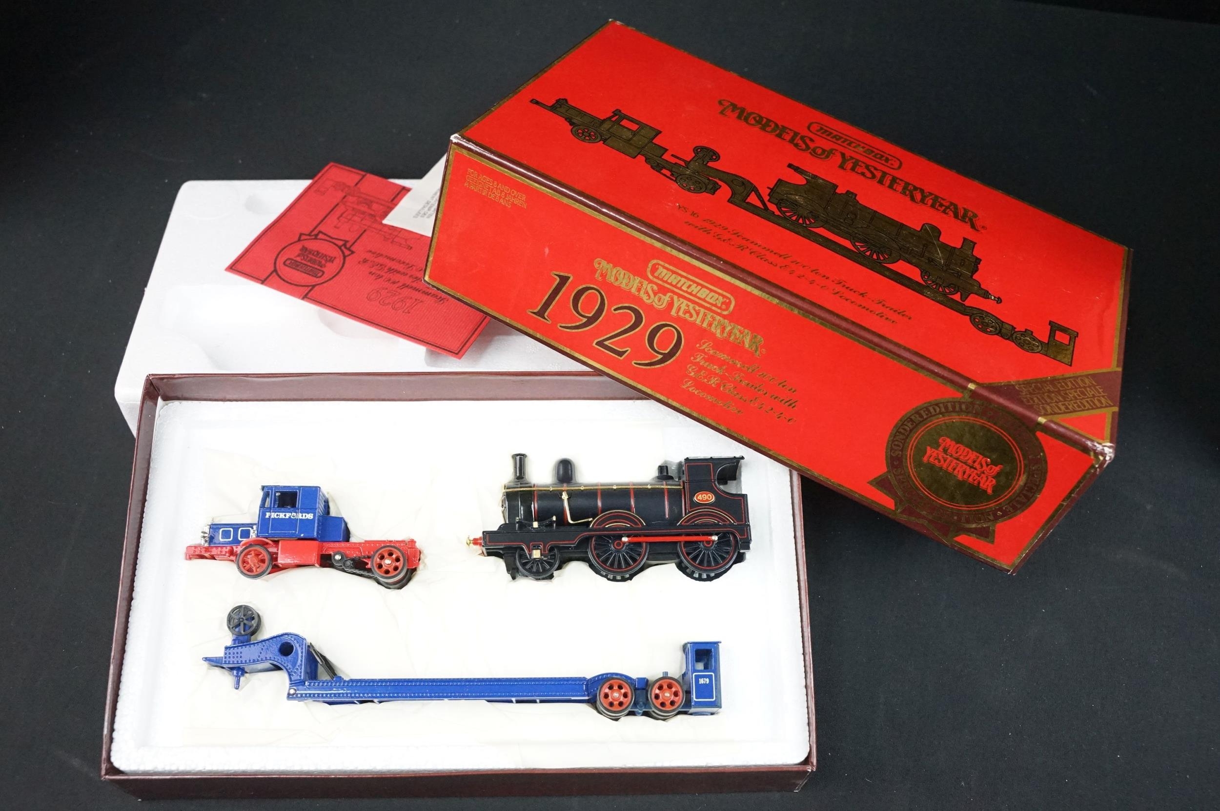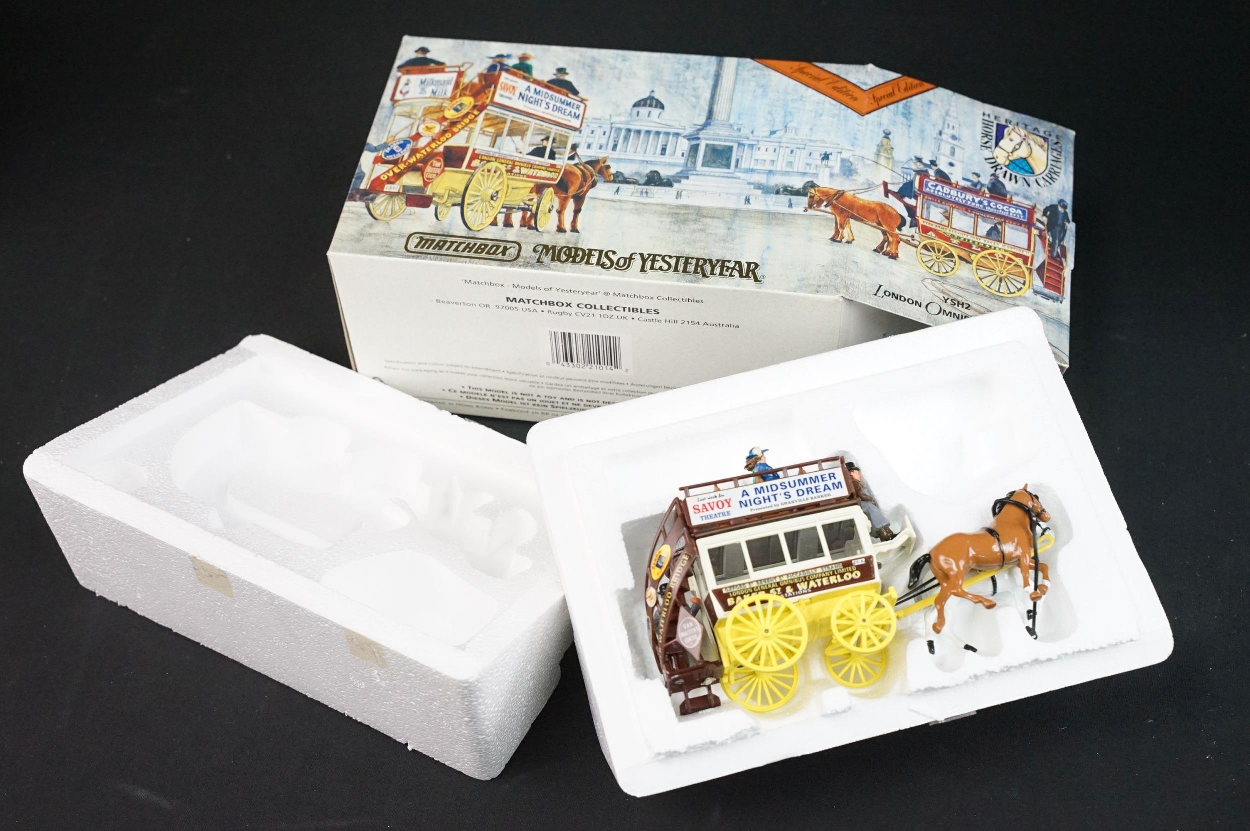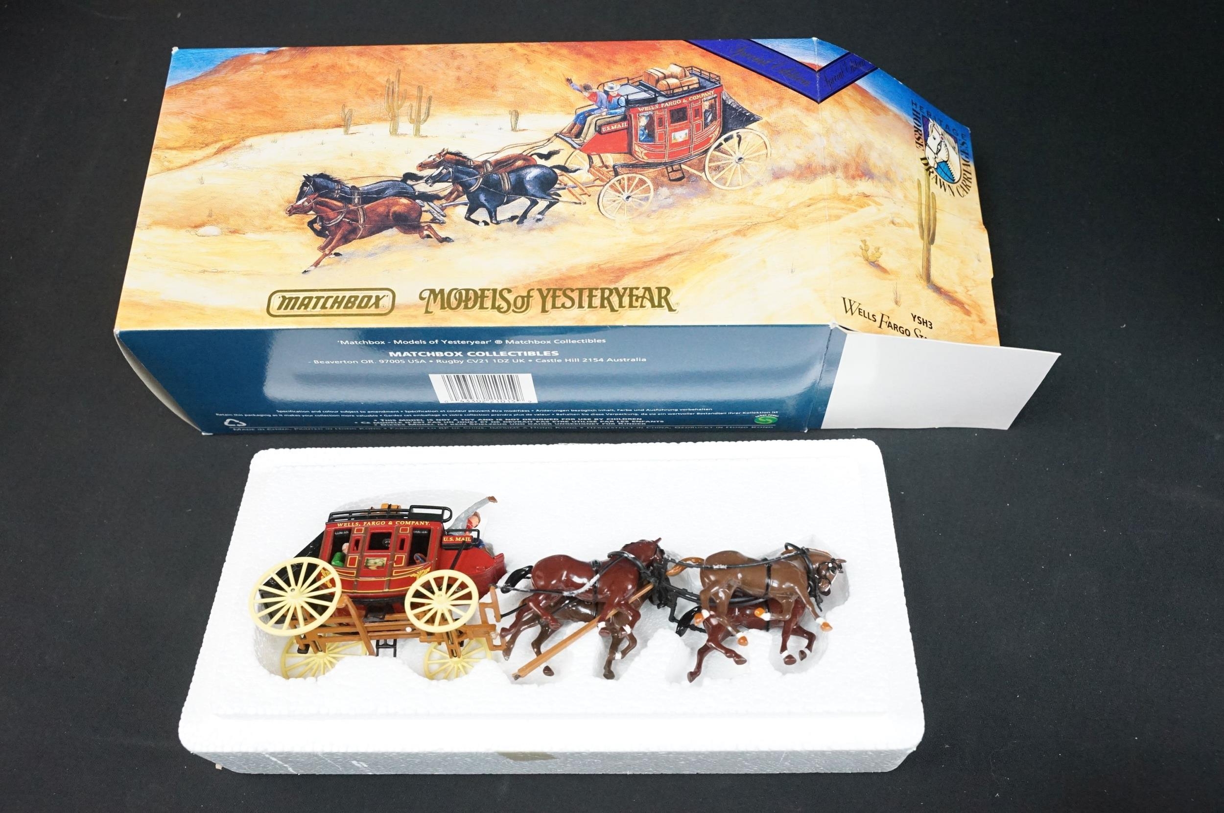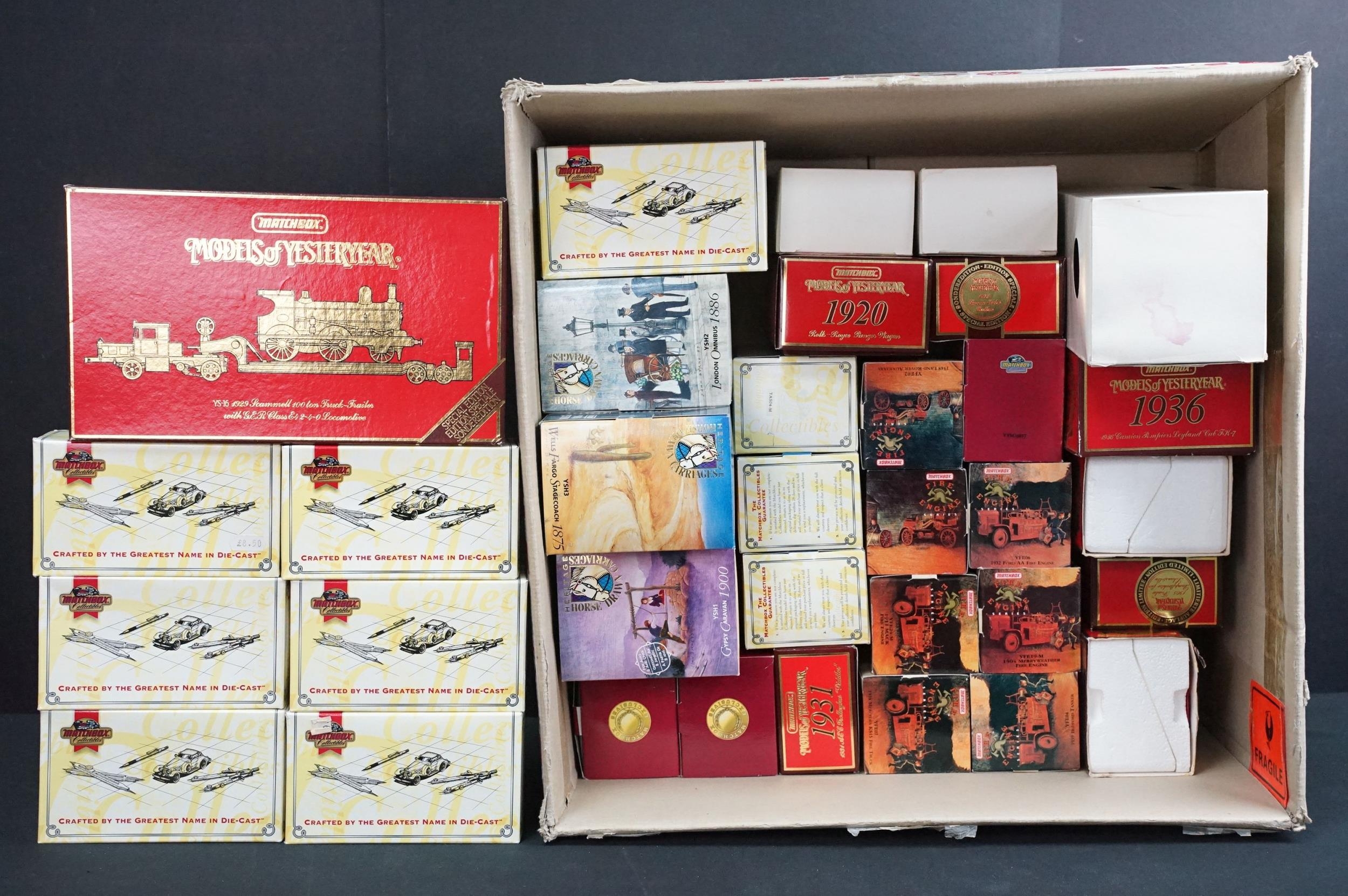 35 Boxed Matchbox diecast models to include 7 x Fire Engine Series, 3 x Heritage Horse Drawn Carriage, 11 x Models of Yesteryear (a few showing water damage to boxes), 2 x Exclusives and 11 x Collectables, diecast ex, boxes vg unless stated