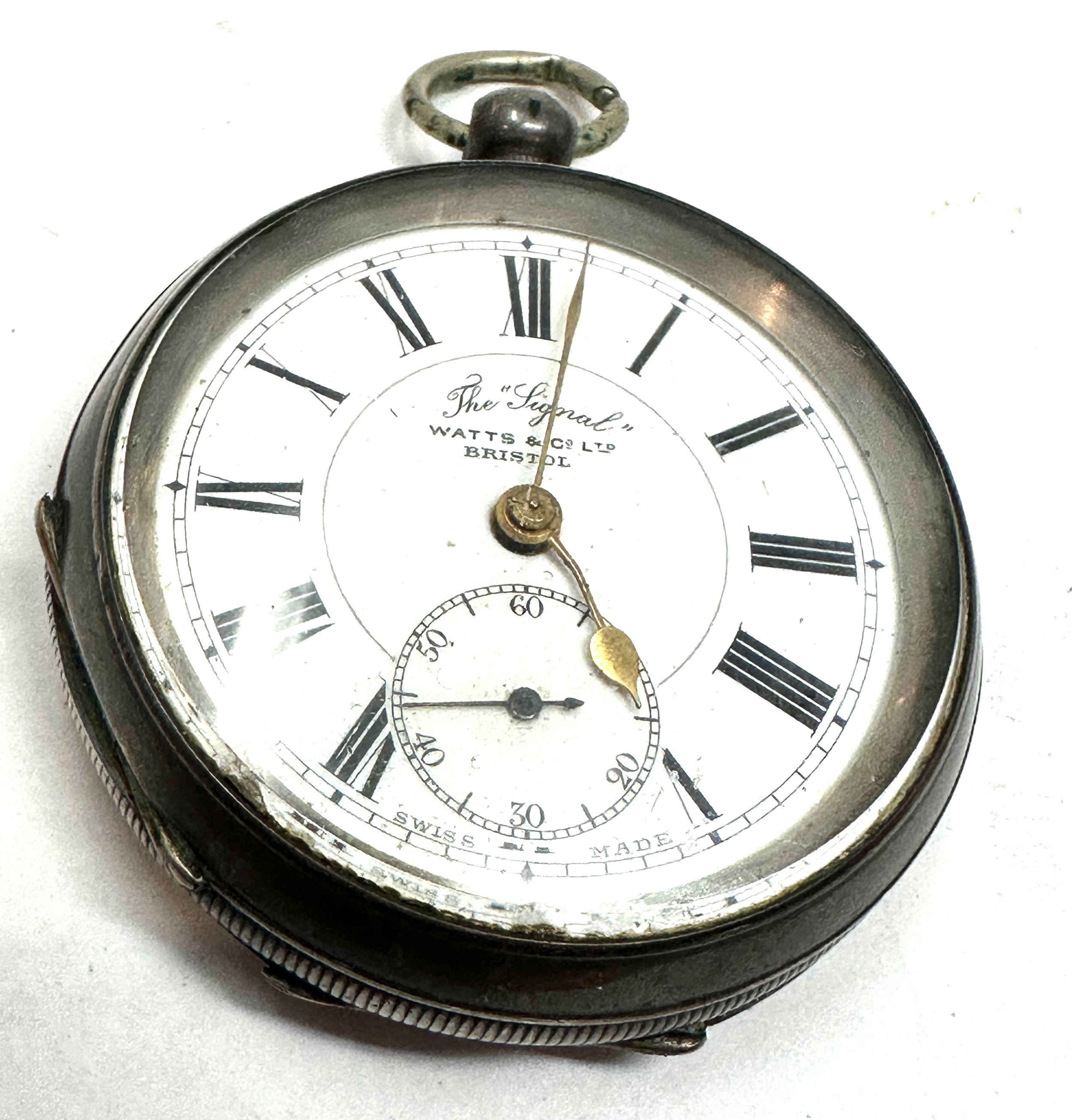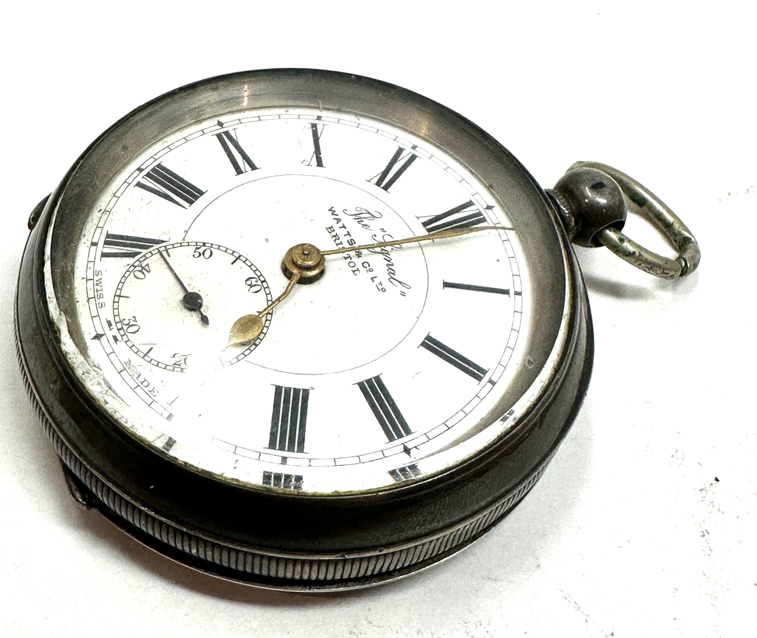 Antique 935 silver open face pocket watch watts & co ltd bristol the watch is not ticking tghe balance spins weight of watch 123g