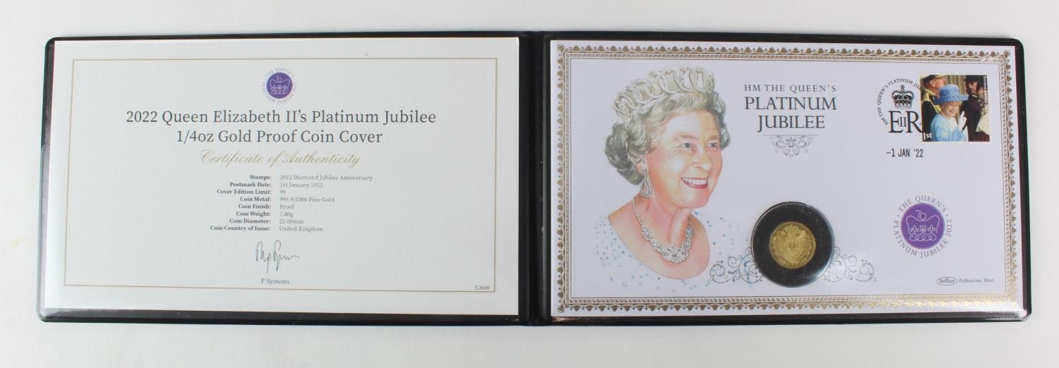 Twenty Five Pounds 2022 (1/4 oz) gold Proof. FDC in a "Harrington & Byrne" cover