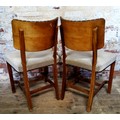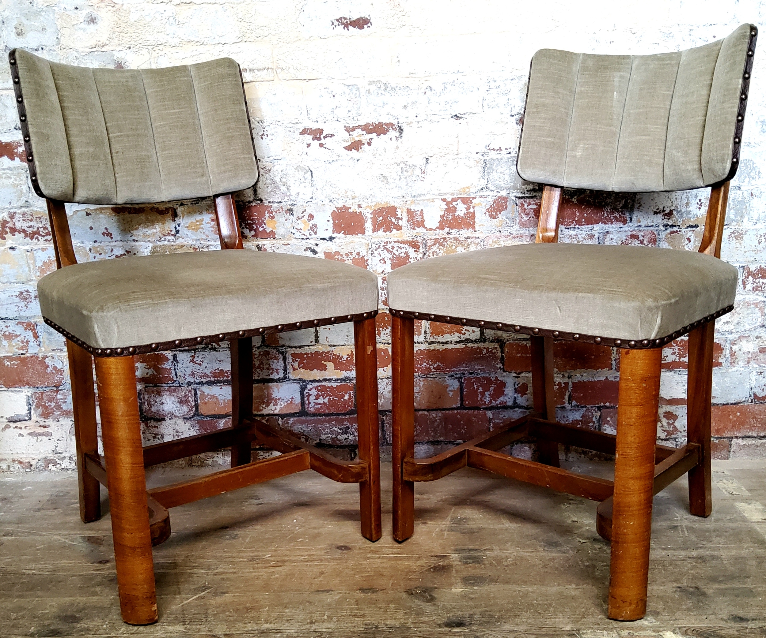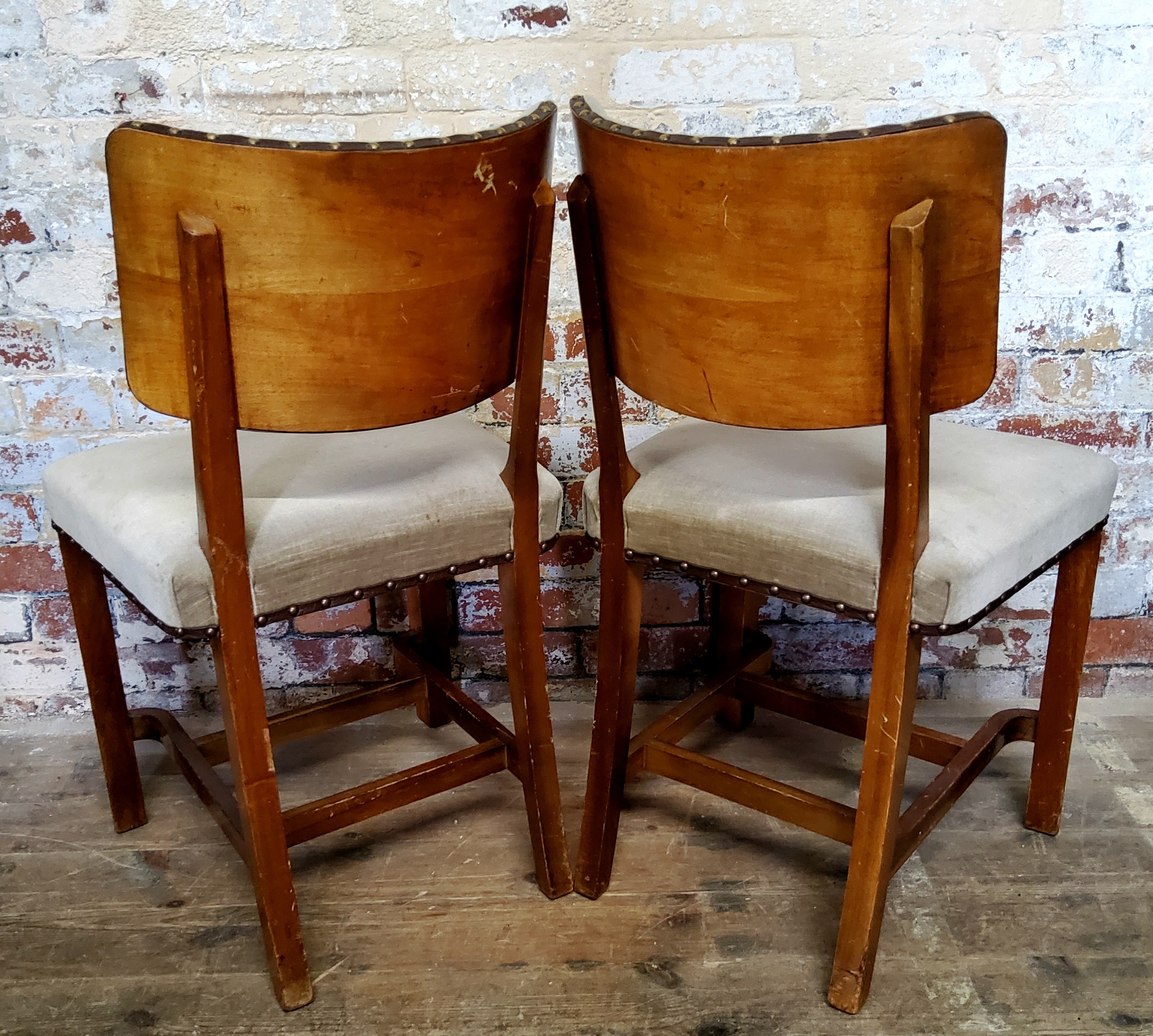 A pair of Art Deco walnut and bentwood bedroom chairs c.1930 with 'T.B&W. Cockayne Cabinet Makers & Co .Sheffield' label to verso. Studded leather fixtures to rim with shell shaped bowed back.