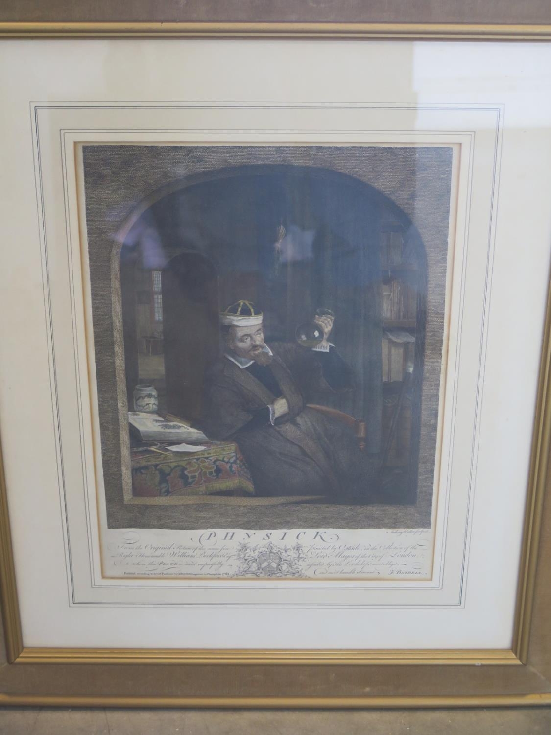 A coloured engraving entitled PHYSICK - J Boydell - frame size 67cm x 56cm