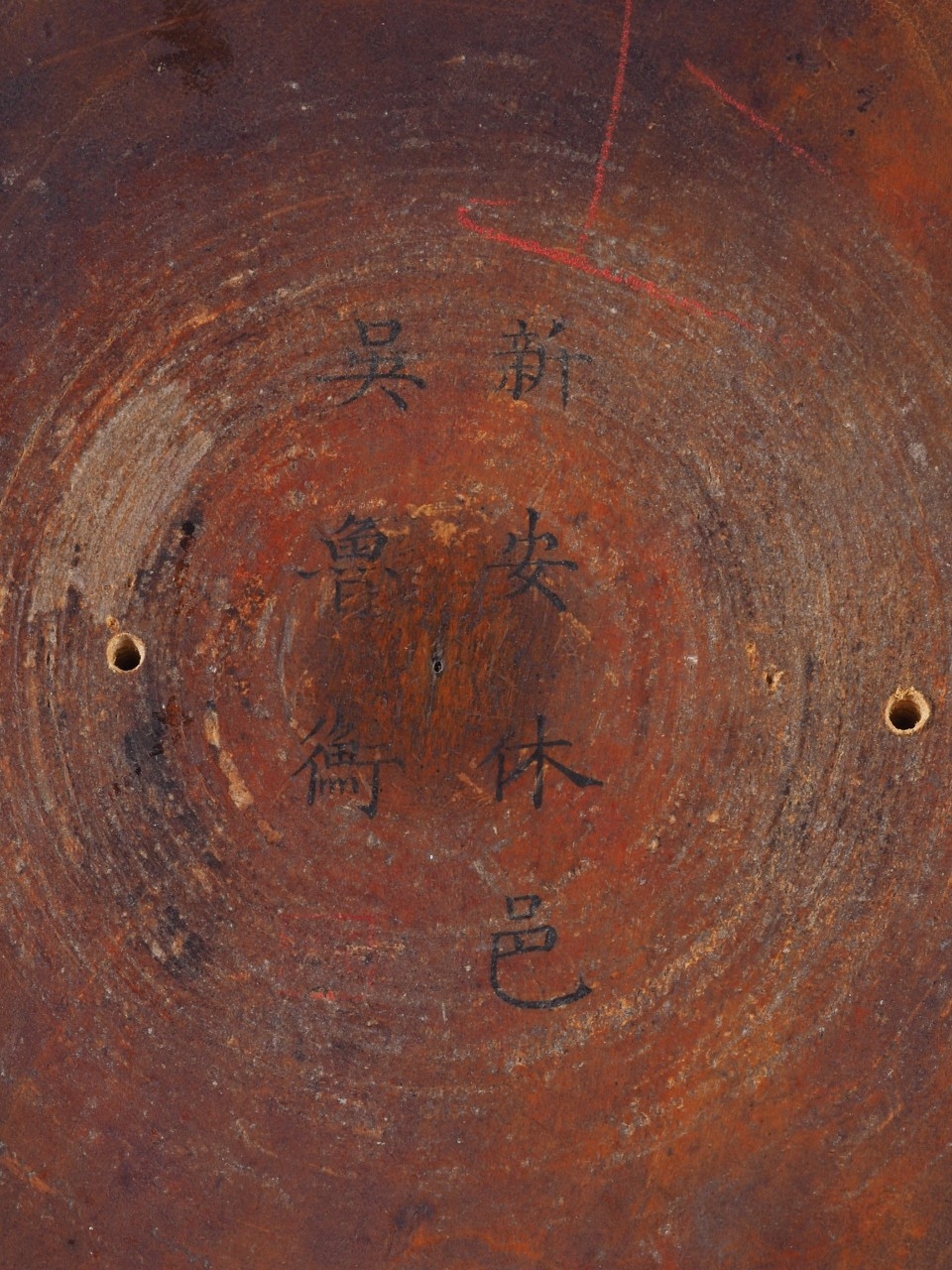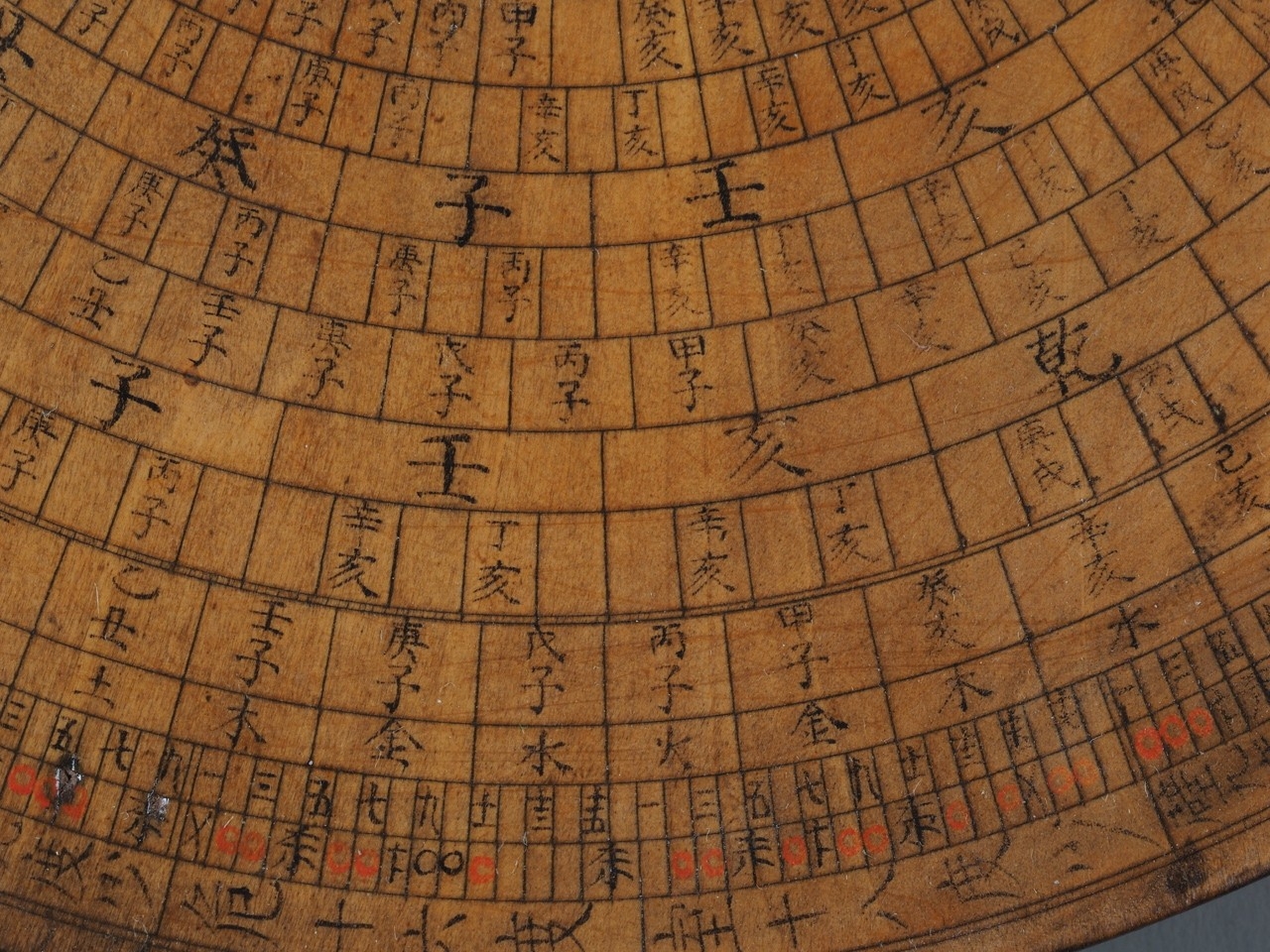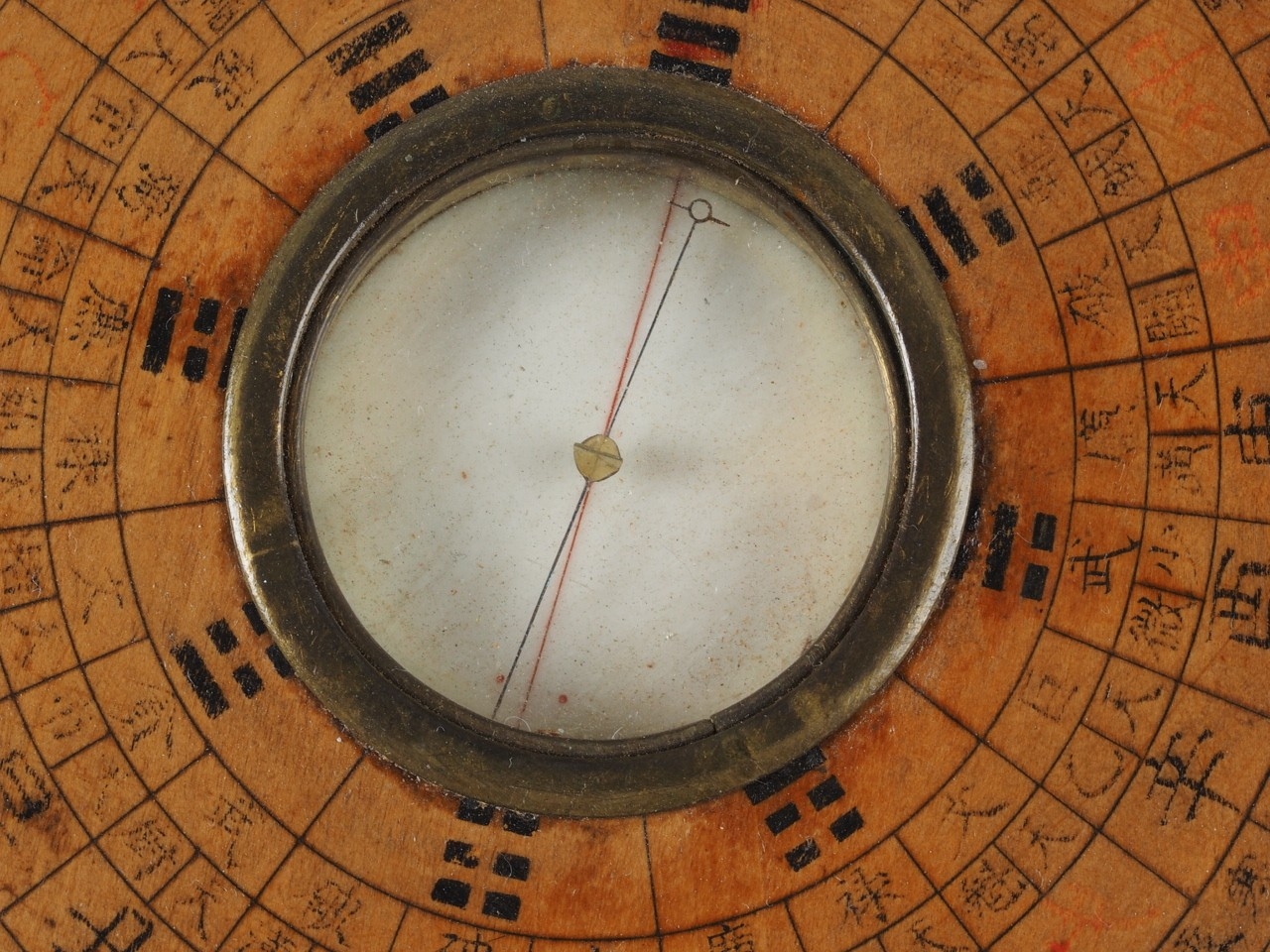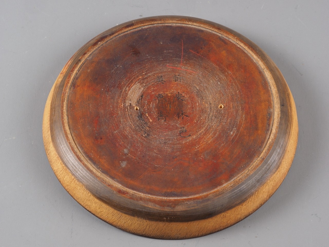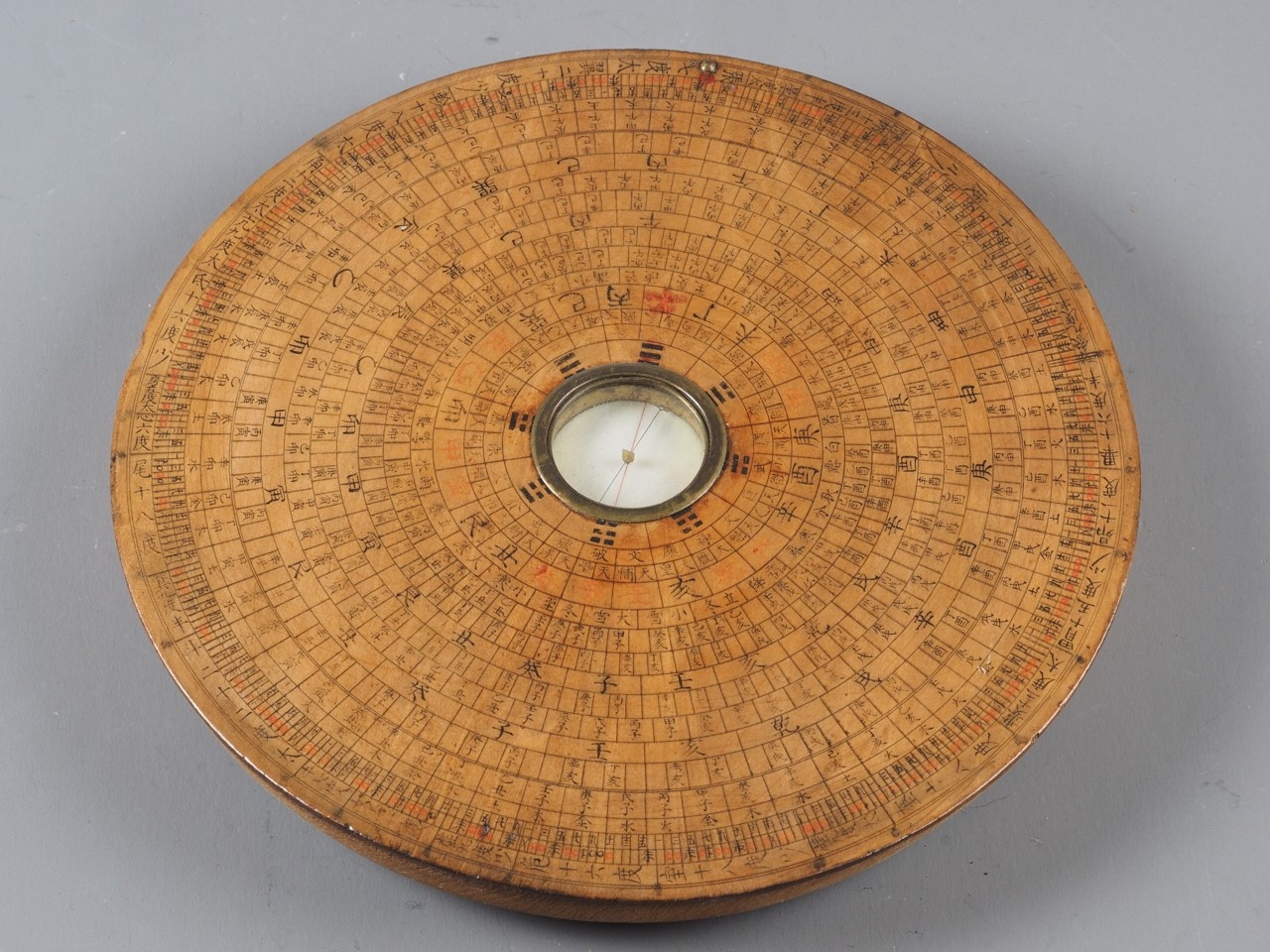 A Chinese circular turned hardwood compass, 7 1/2" dia