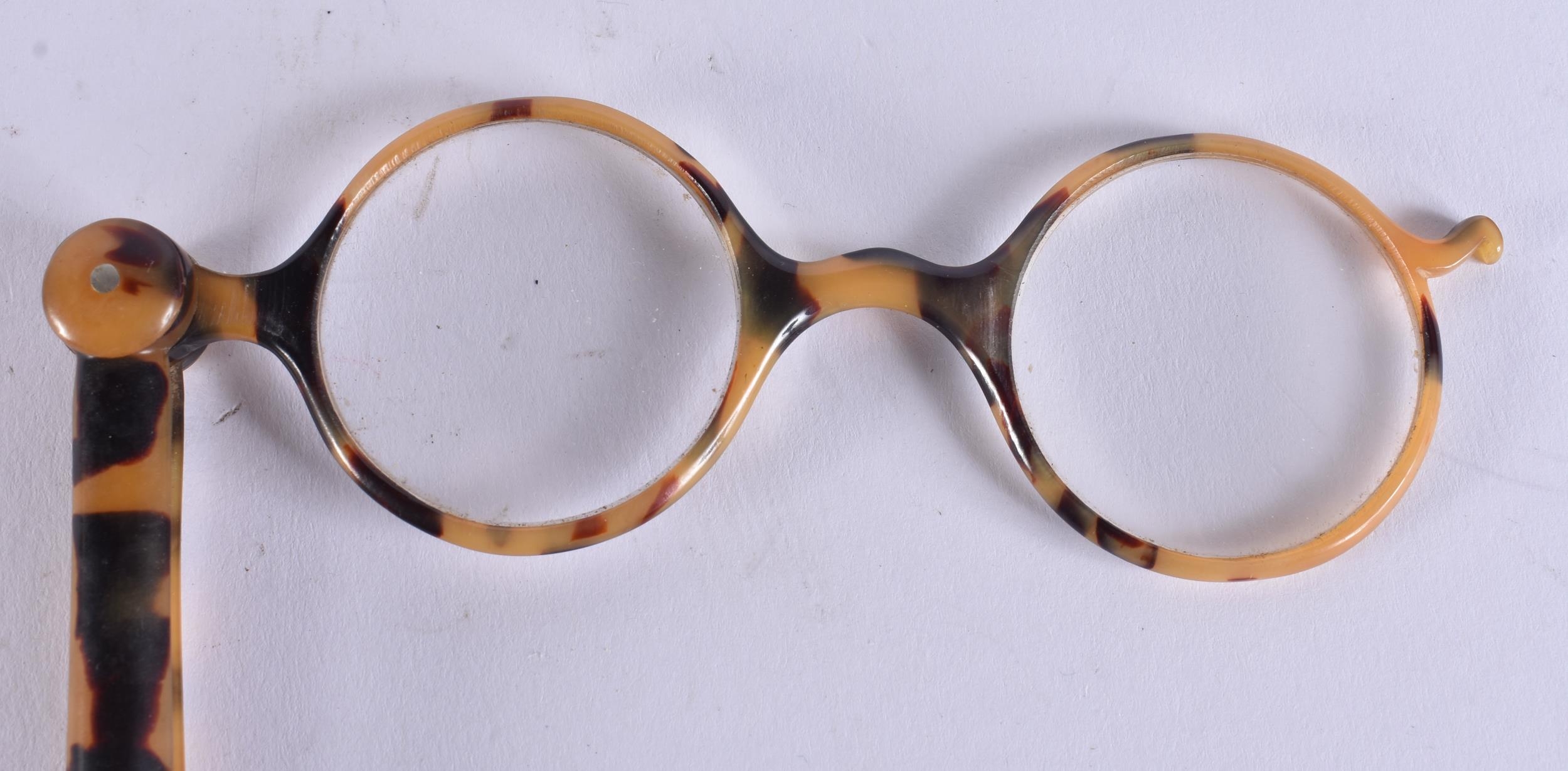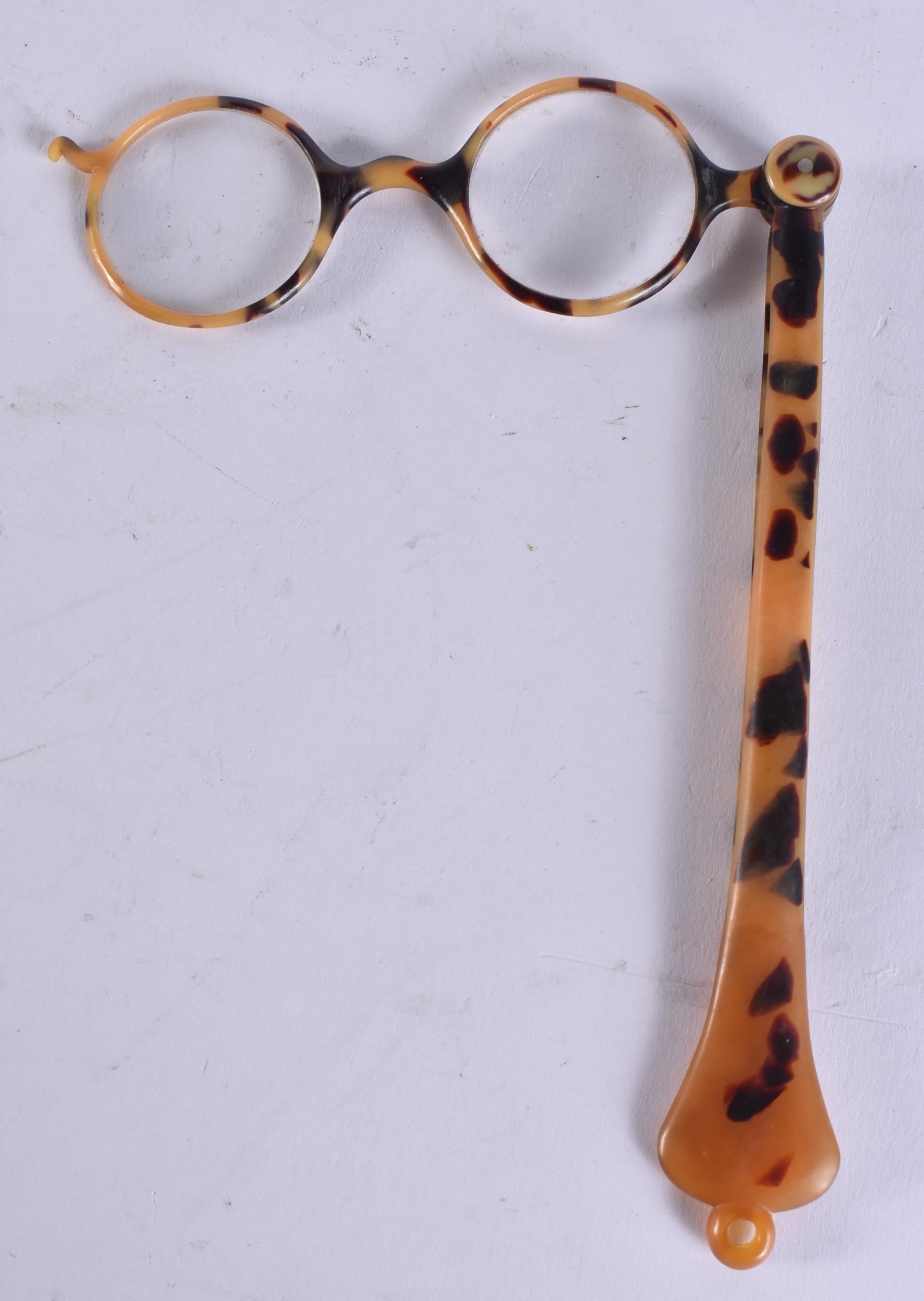 A PAIR OF TORTOISESHELL LORGNETTES. 25 cm long extended.