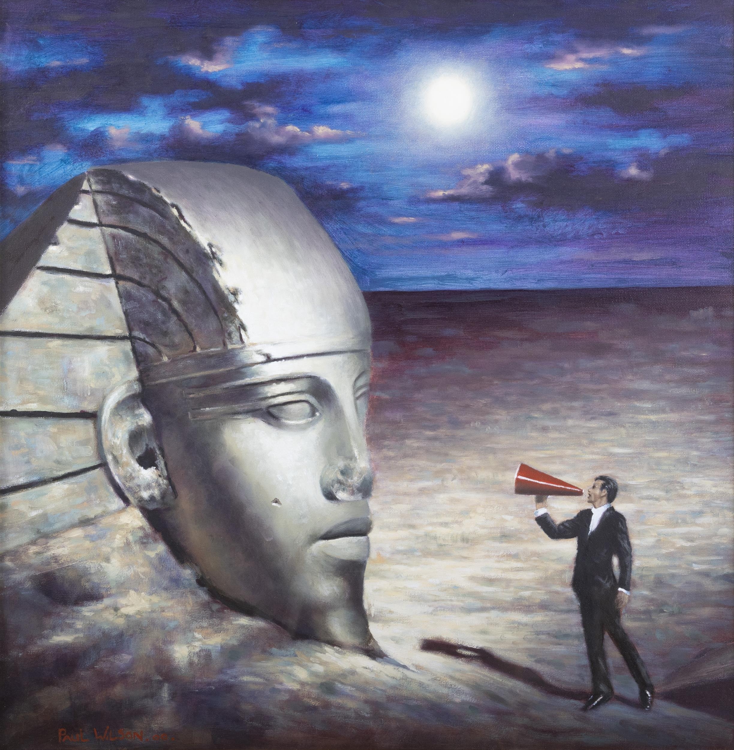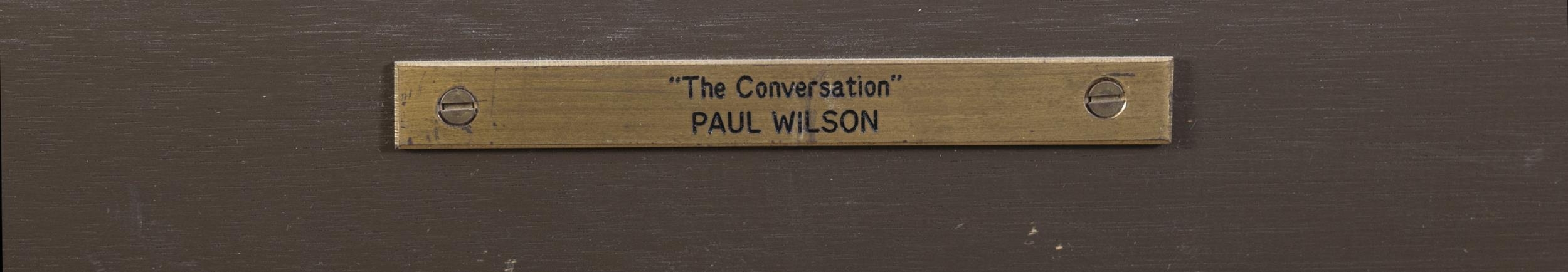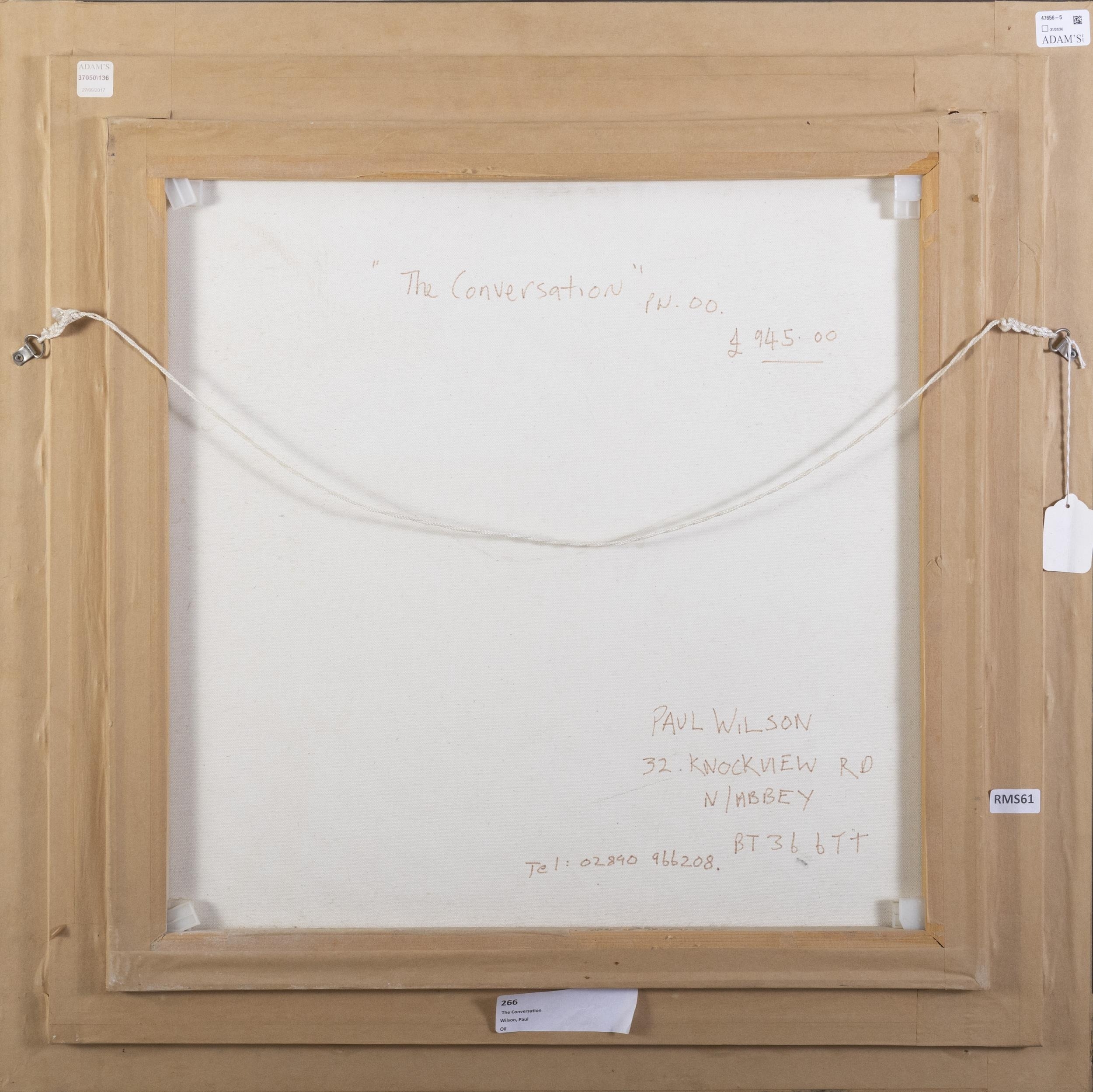 Paul Wilson (b.1963) The Conversation Oil on canvas, 60 x 60cm Signed; also inscribed verso