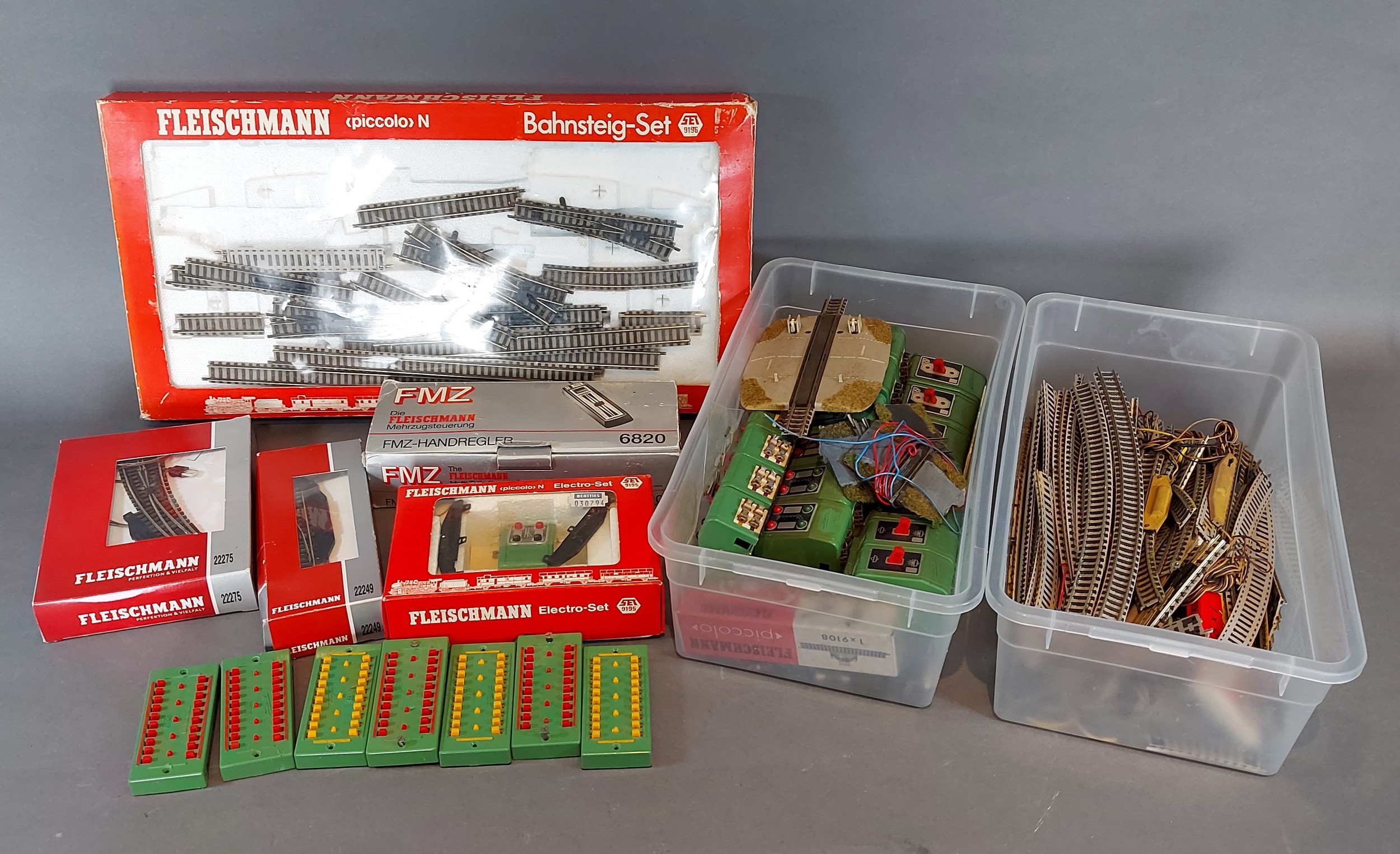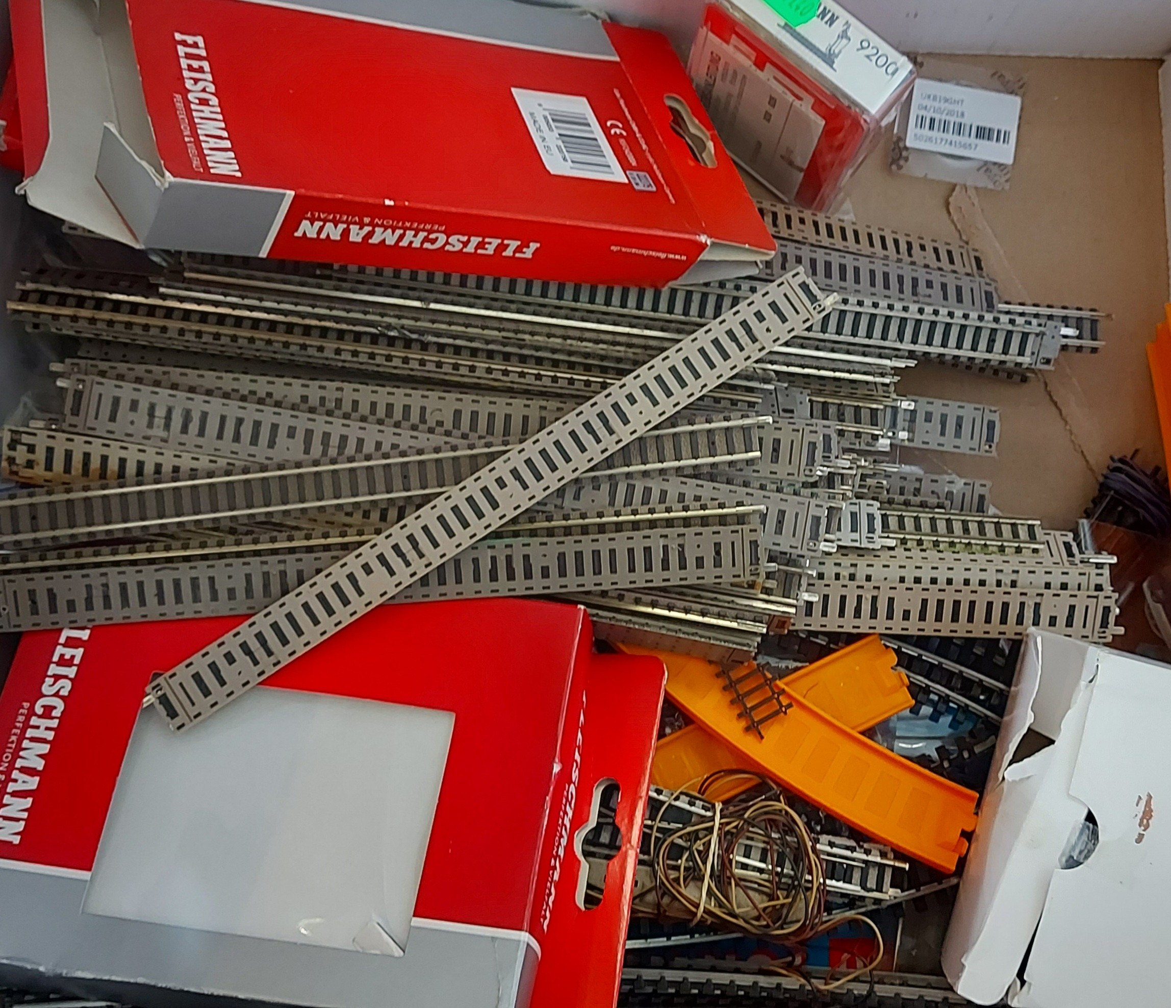 A collection of Fleischman N gauge track together with a collection of related accessories