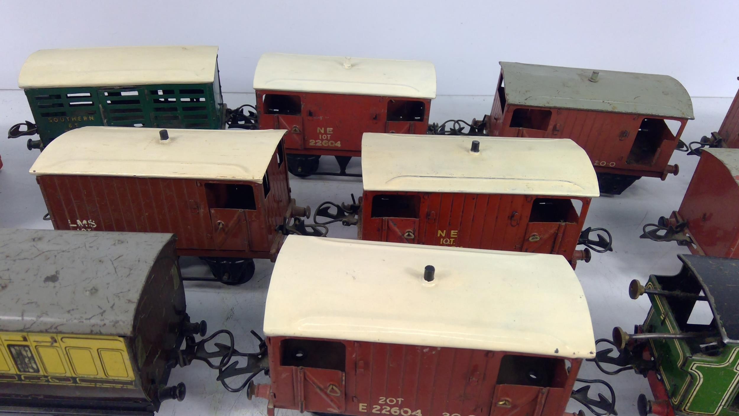 Large selection of various carriages and rolling stock, mainly 0 gauge