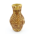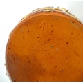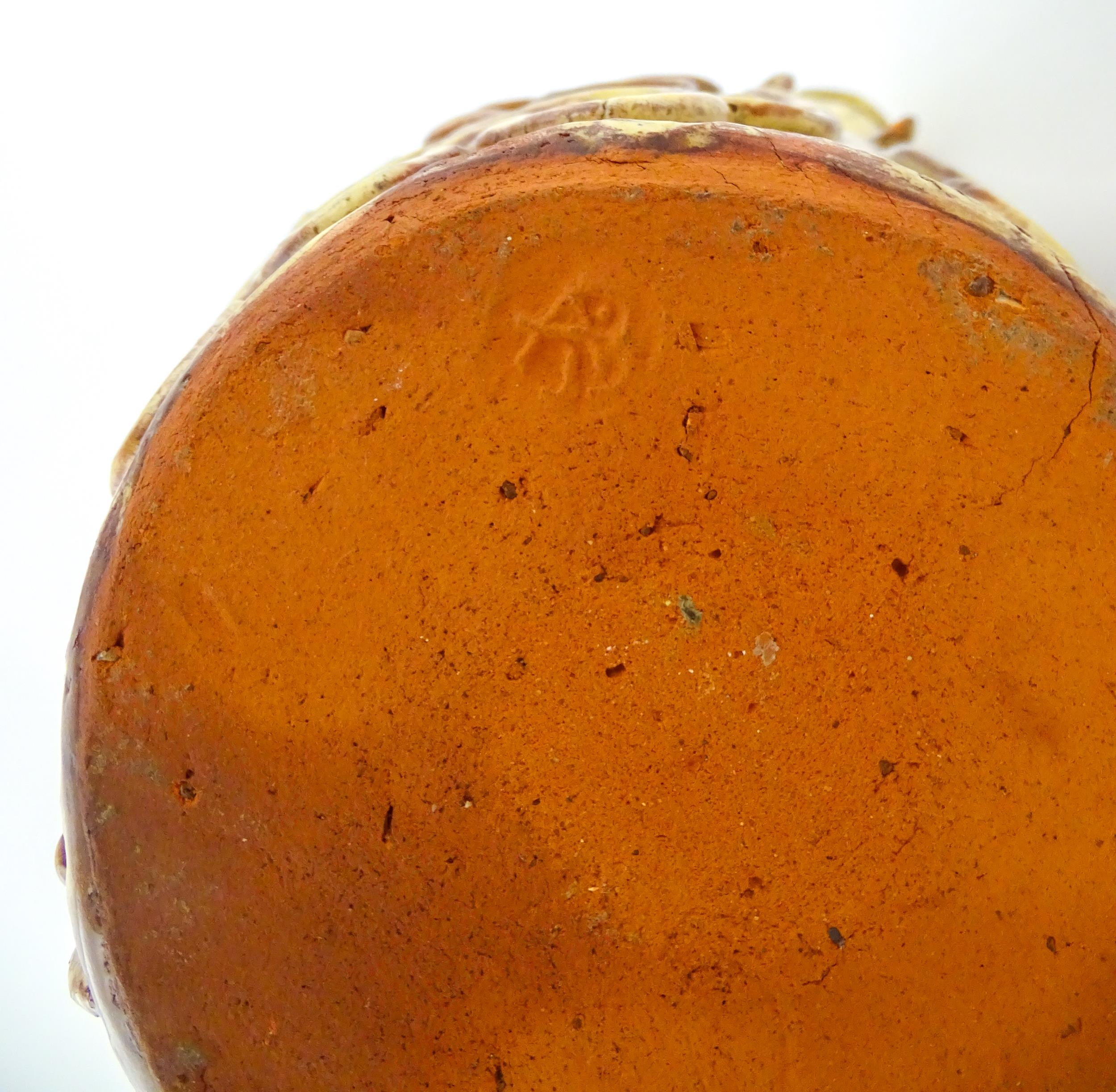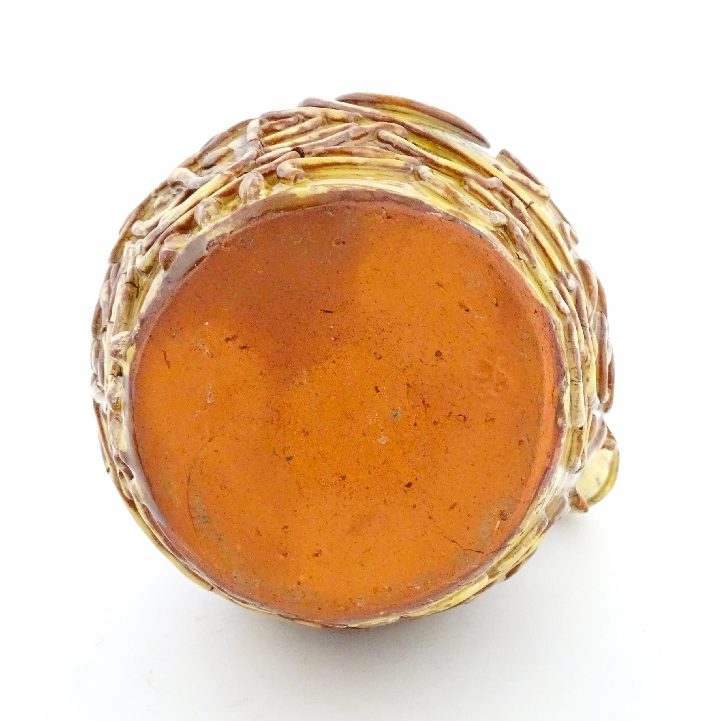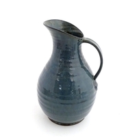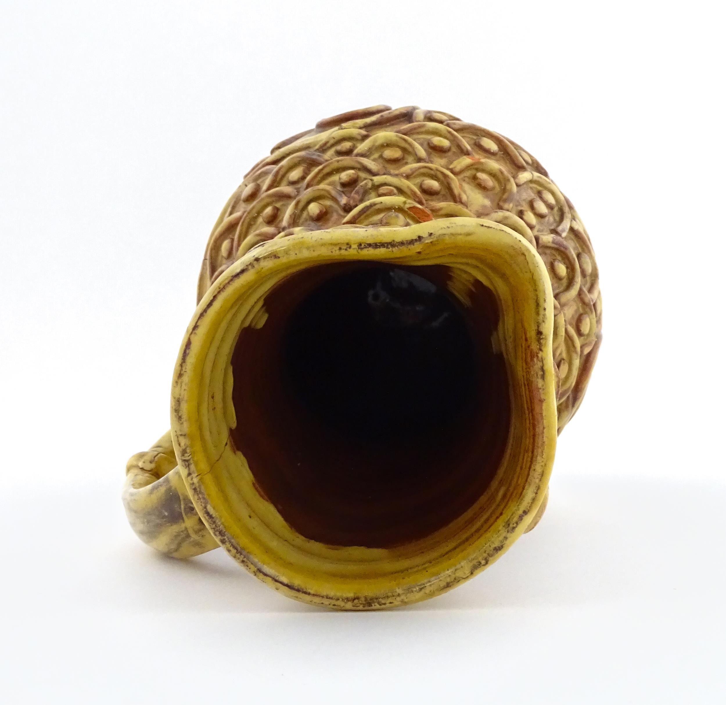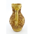 An Alistair Blake studio pottery jug with ochre glaze with applied stylised scale decoration. Stamped with maker's mark under. Approx. 11 1/4" high