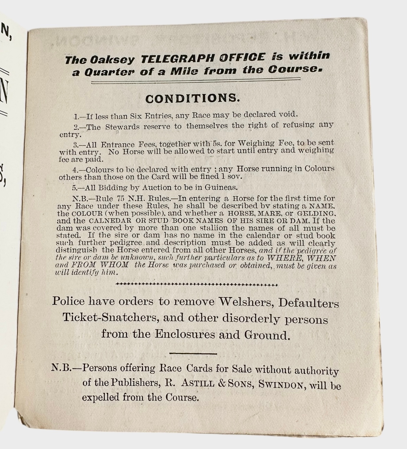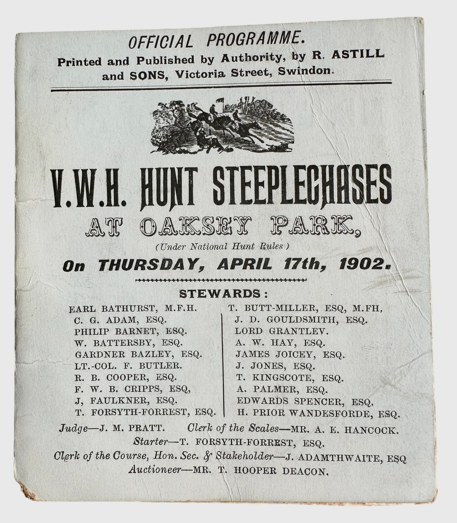 Vale Of The White Horse Hunt Steeplechases At Oaksey Park 1902 Official Programme Size 11.7cm x 10.2cm