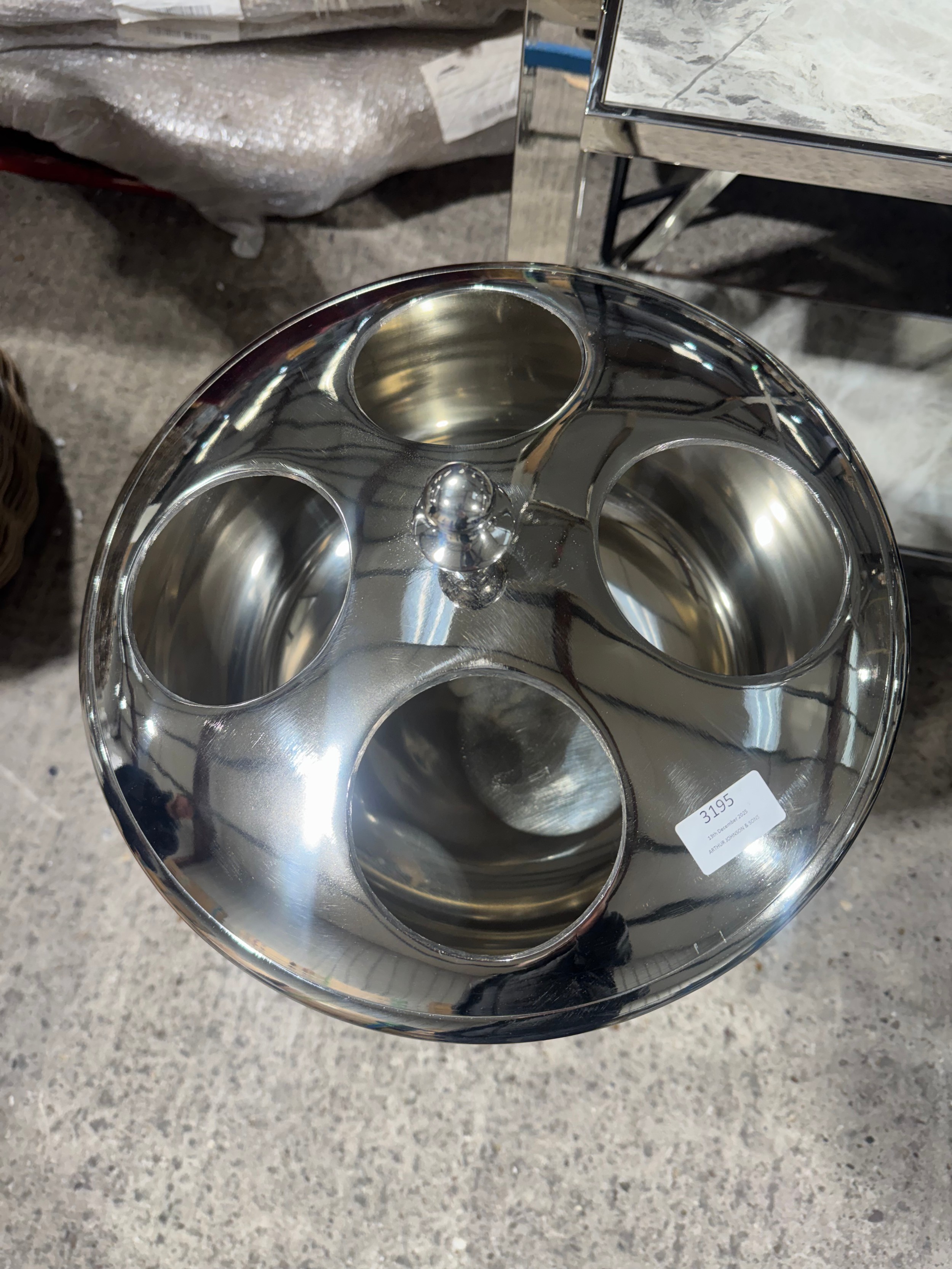 A chrome effect 4 bottle floor standing champagne holder (display)