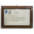 A Victorian Glasgow Burgess and Guild Brother certificate, awarded to William Clengan (?) on 4th March 1879 and signed by the Town Clerk Depute, in a heavy oak frame measuring approx. 51cm x 35.5cm externally