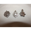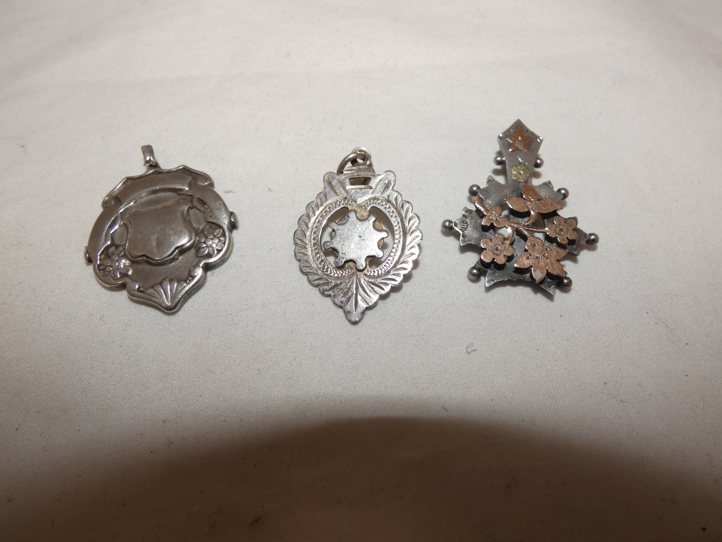 Silver overlaid pendant and two silver medal fobs, 178g gros...