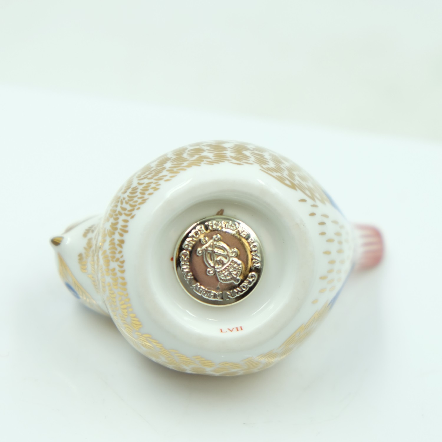 Royal Crown Derby bird goldcrest with gold stopper, L: 90 mm. UK P&P Group 1 (£18+VAT for the first lot and £2+VAT for subsequent lots)
