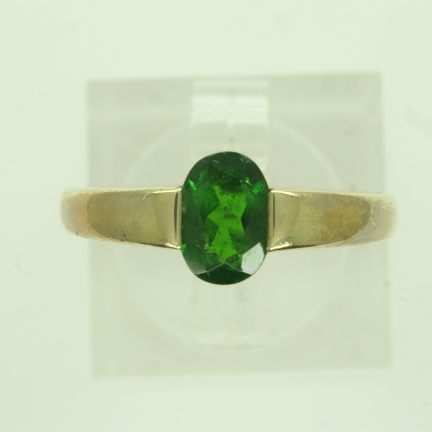 9ct gold solitaire emerald set ring, size M, 2.3g. UK P&P Group 0 (£6+VAT for the first lot and £1+VAT for subsequent lots)