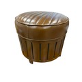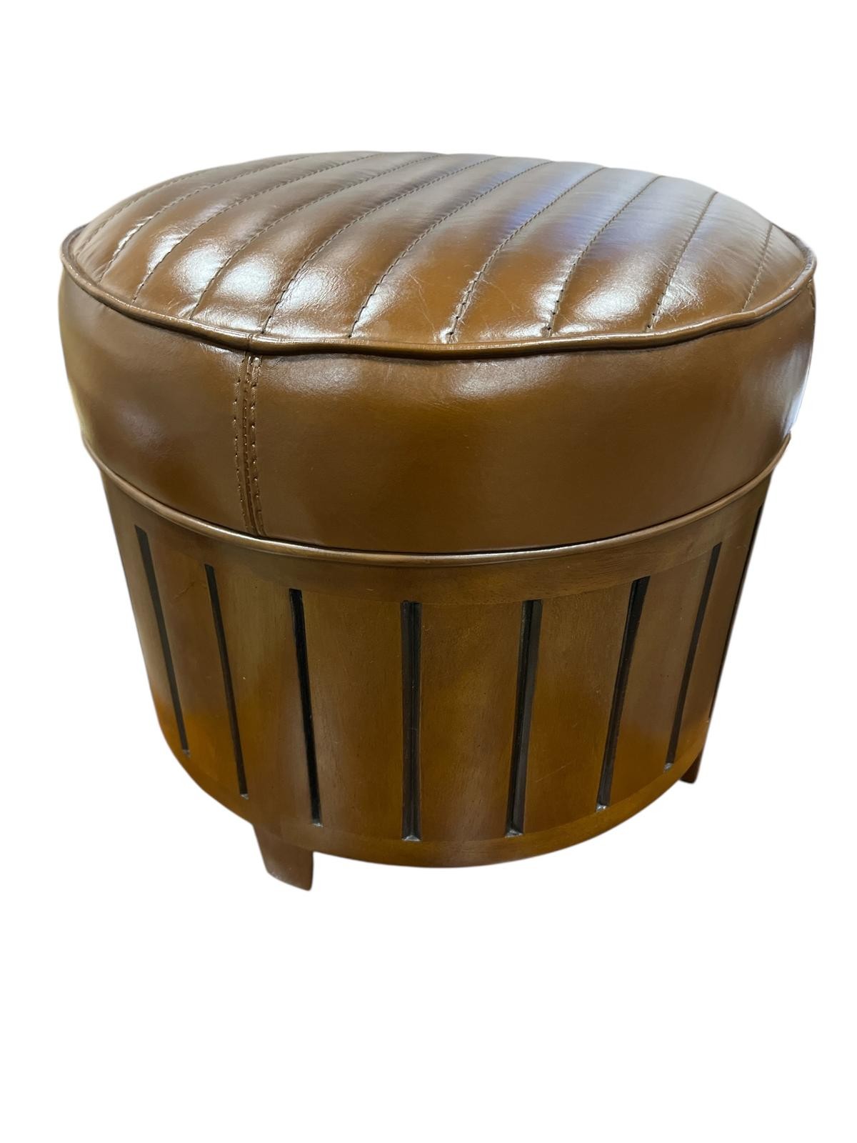 A VERY FINE WALNUT AND HIDE UPHOLSTERED STOOL of cylindrical outline the shaped top above a panel frieze on moulded legs 37cm (h) x 48cm (d)