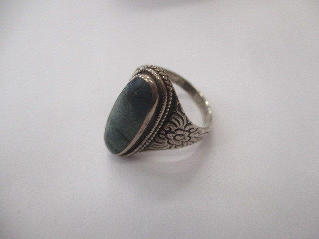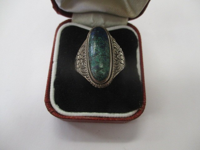 ART DECO SILVER RING WITH LAPIS LAZULI STONE SIZE Q