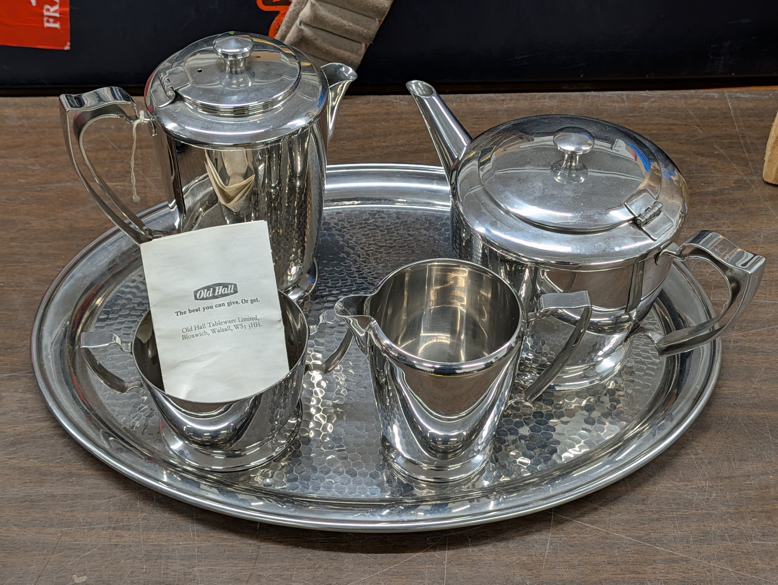 Old Hall Five-Piece Stainless Steel Tea and Coffee Service with Tray