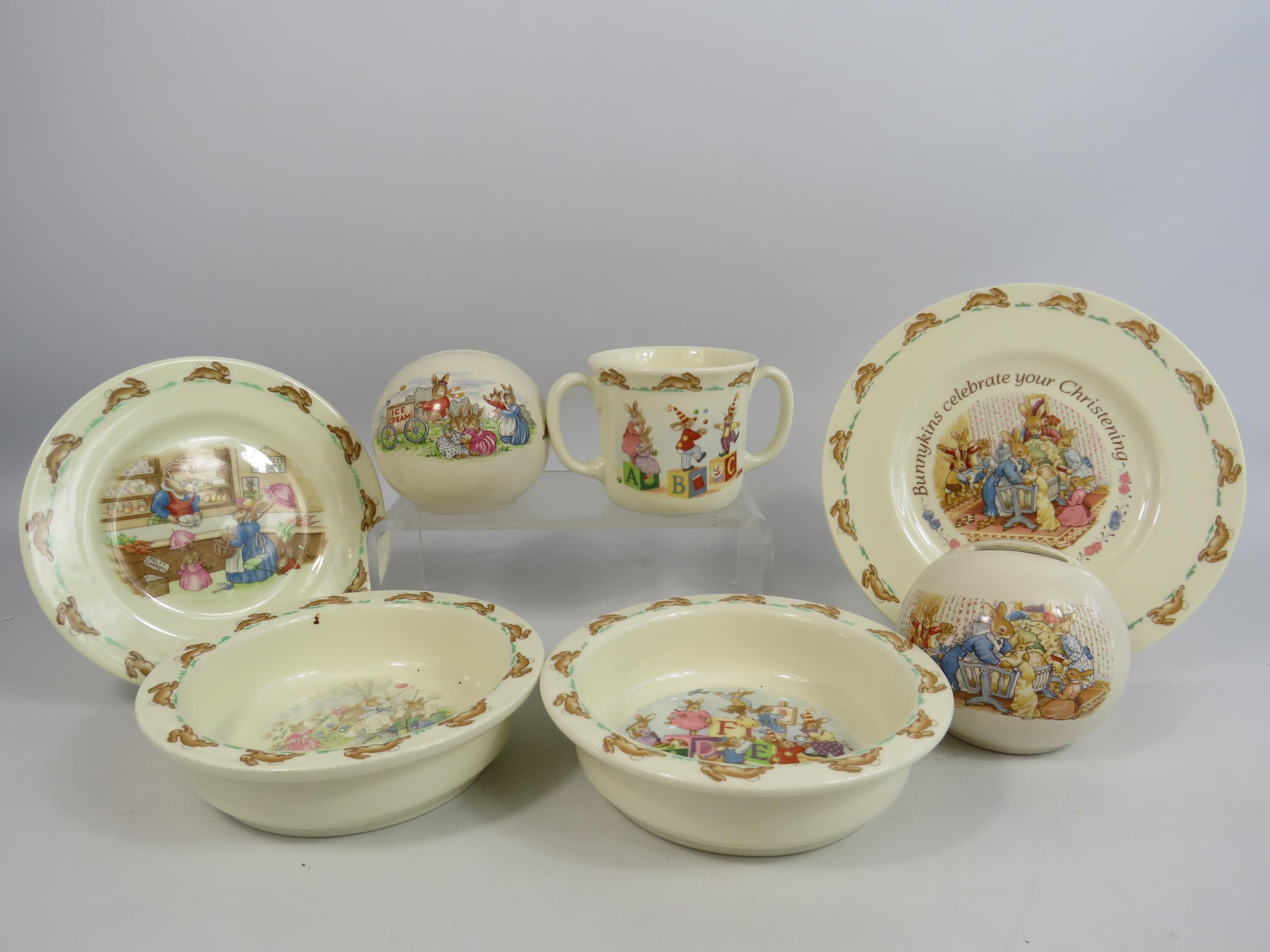 Royal Doulton Bunnykins collection ceramics cups, bowls, money box etc.