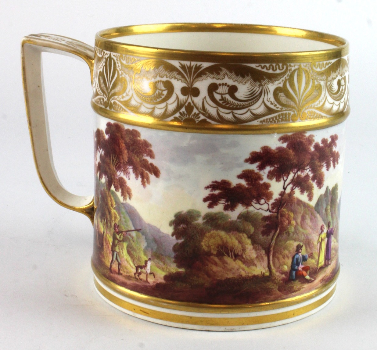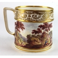 Derby. A Derby porcelain porter mug, circa early to mid 19th century, depicting figures within a country estate, height 12.5cm approx.
