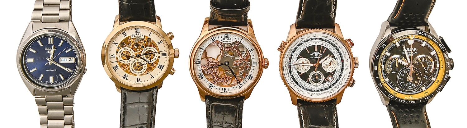 A Pulsar stainless steel gentleman's chronograph wristwatch, 44mm diam, quartz movement and four various other wristwatches (5)