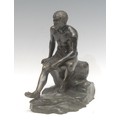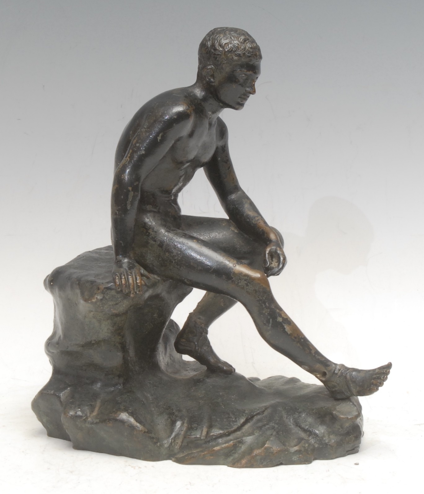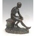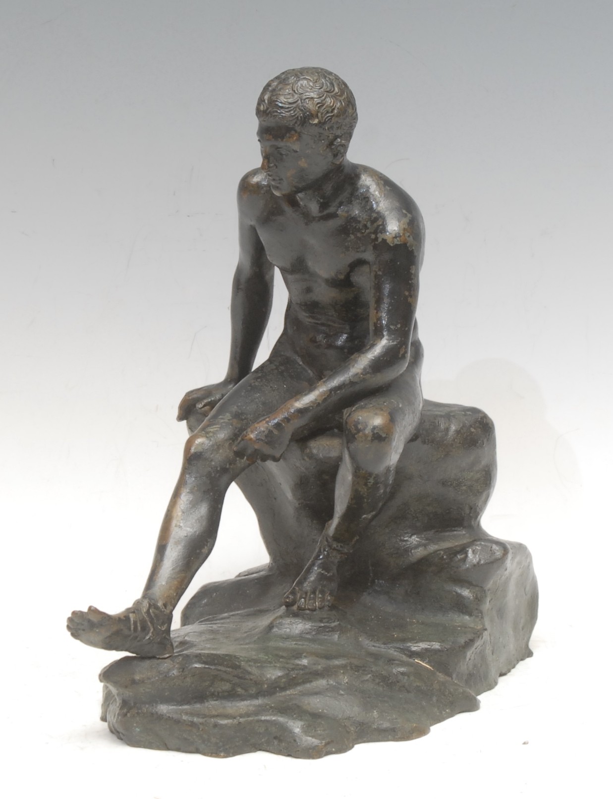 Grand Tour School (19th century), a dark patintated bronze, Seated Hermes, after that discovered in the Villa of Papyri at Herculaneum in 1758, signed G Va**e, 22.5cm high