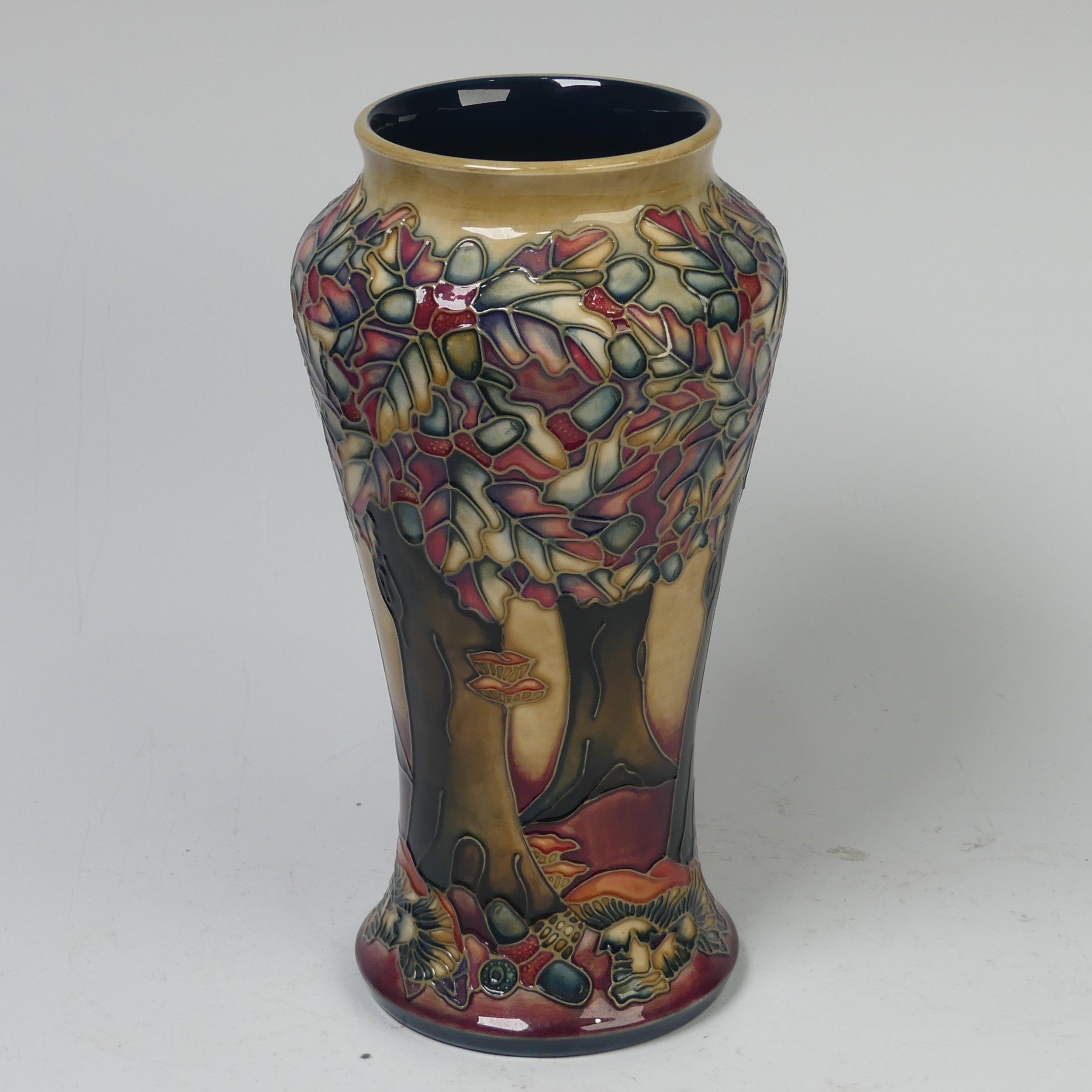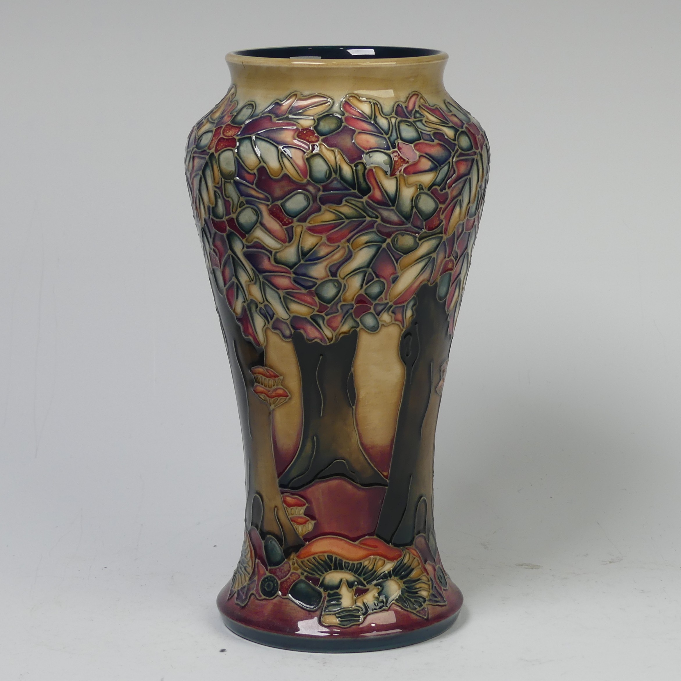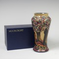 A Moorcroft Pottery ‘Knightwood’ pattern Vase, by B.A. Wilkes, dated 1998, impressed marks to base, signed and dated by ‘B.A. Wilkes’, 26.5cm high, boxed.