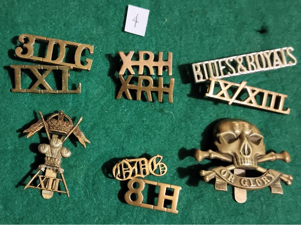 12th Royal Lancers (Prince of Wales's) and 17th Lancers (Duke of Cambridge's Own) with eight Shoulder Titles including: 3rd Dragoon Guards, 8th Hussars, Blues and Royals etc.