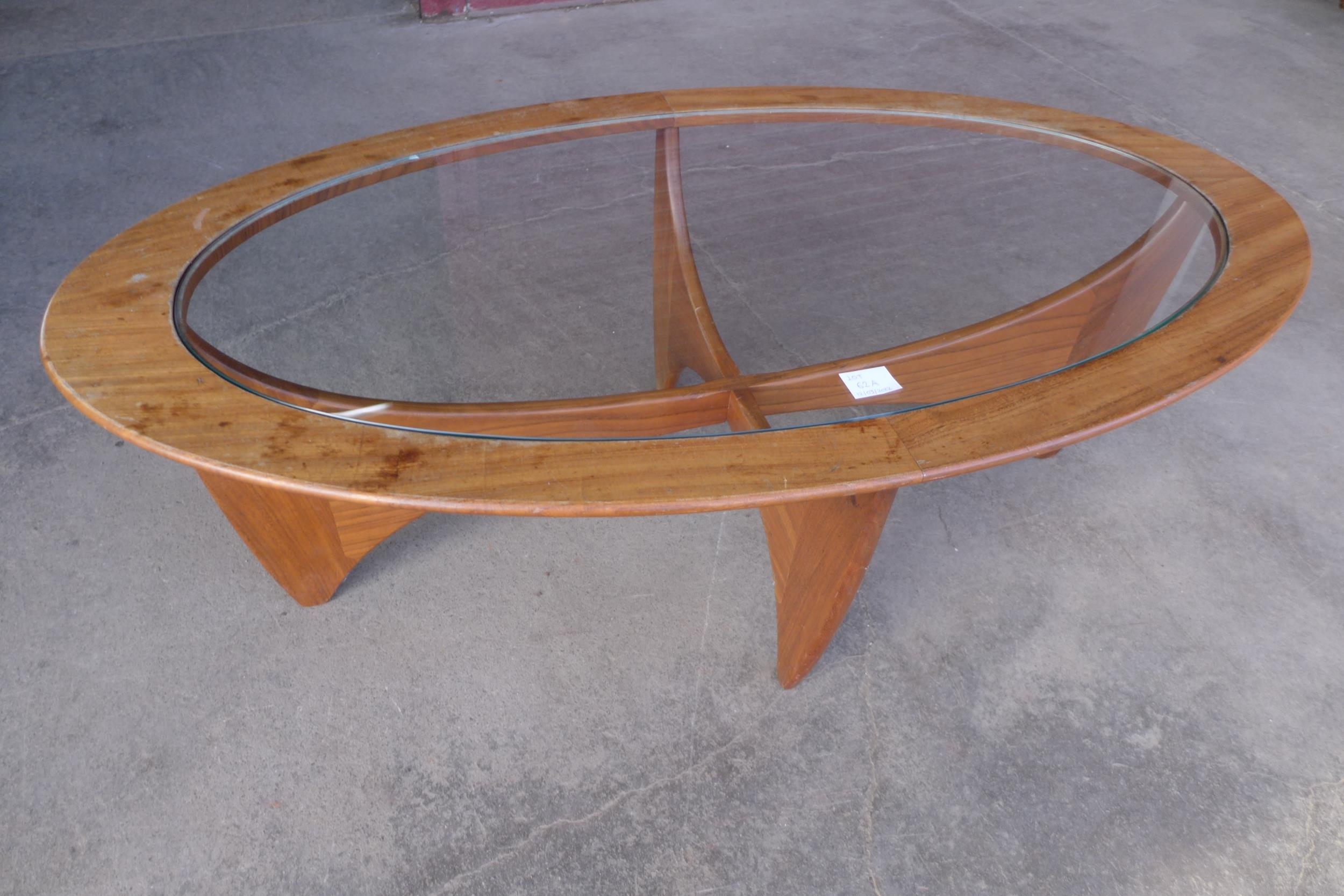 A G-Plan Astro teak and glass topped oval coffee table