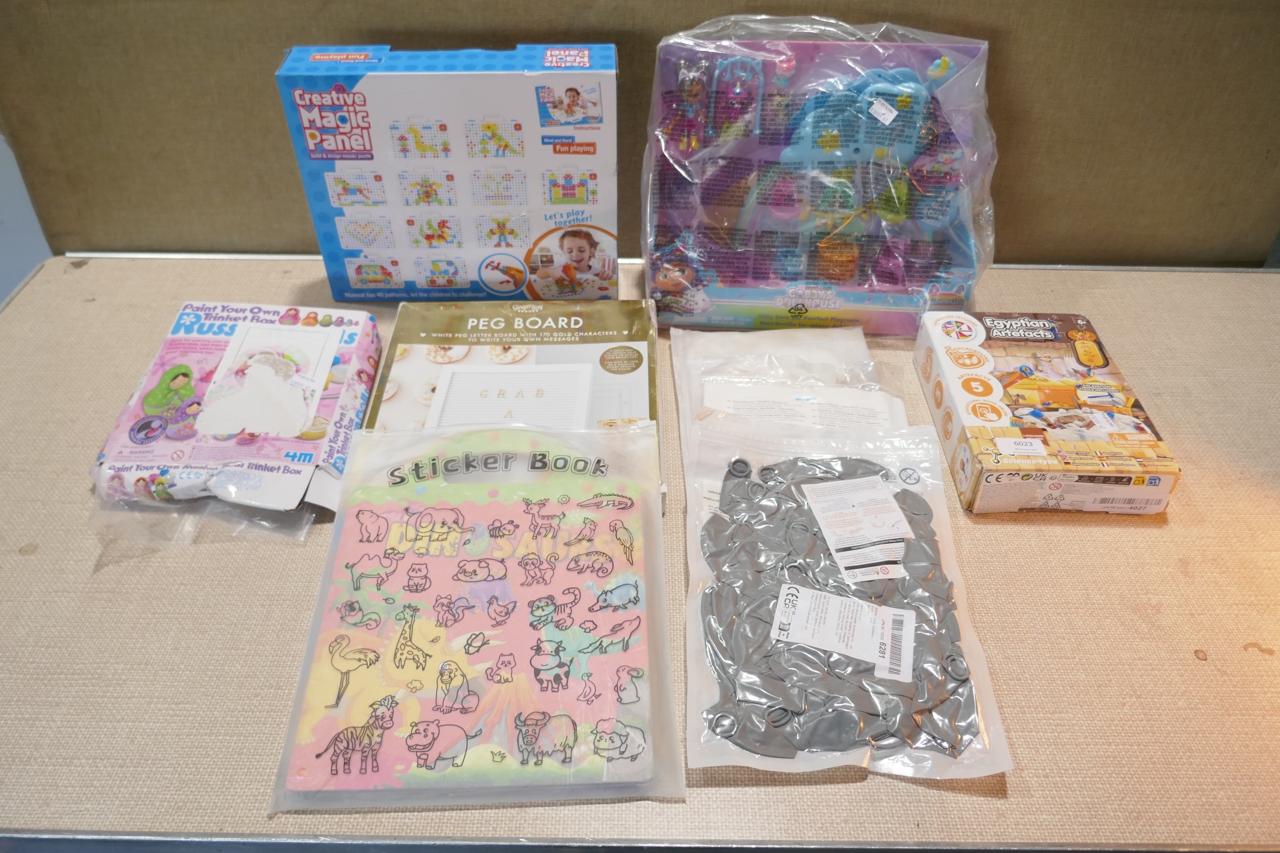 An Egyptian Artefacts toy, Gabby Dollhouse, Peg Board, Magic Panel and some craft items *This lot is subject to VAT