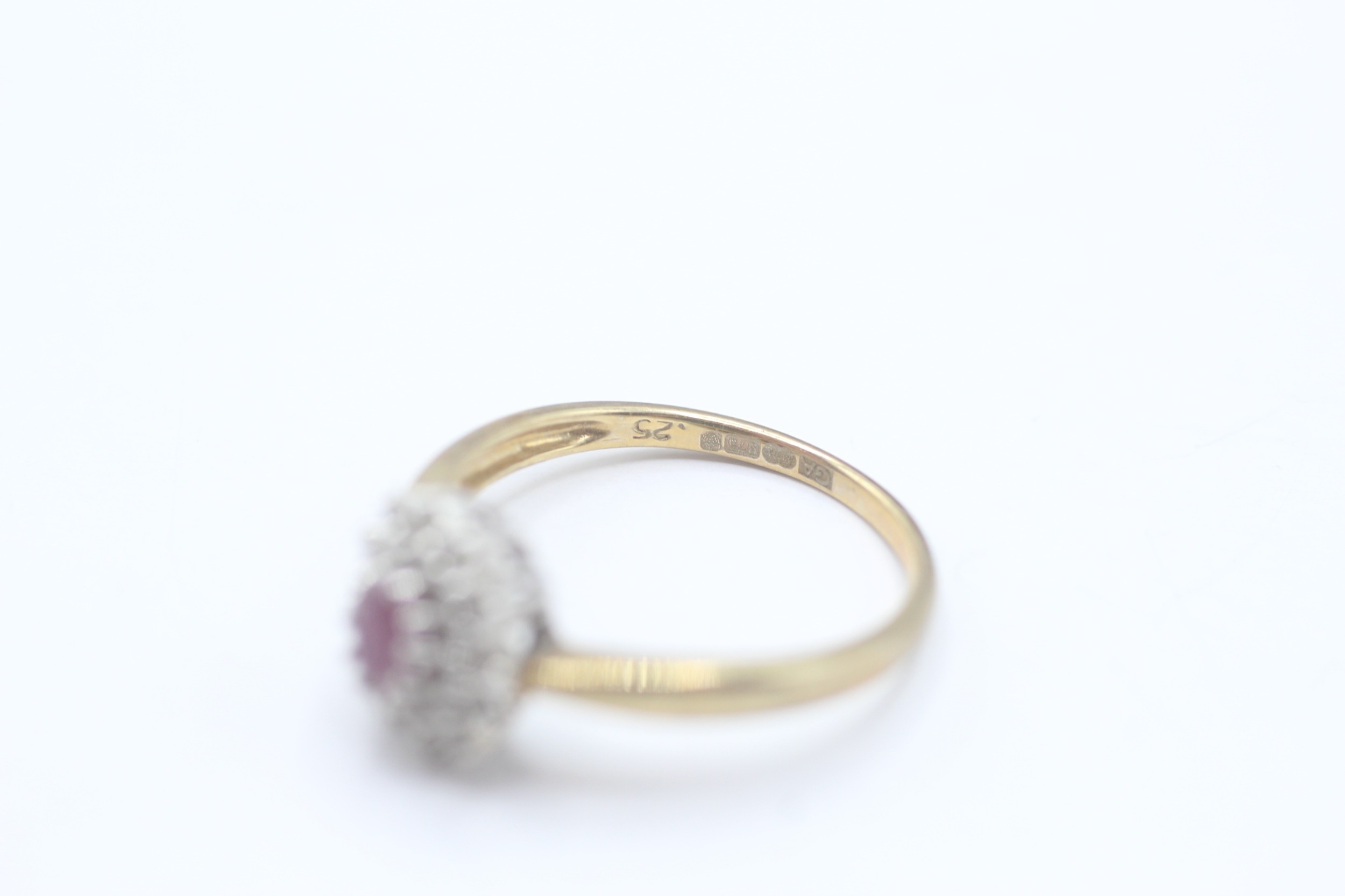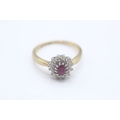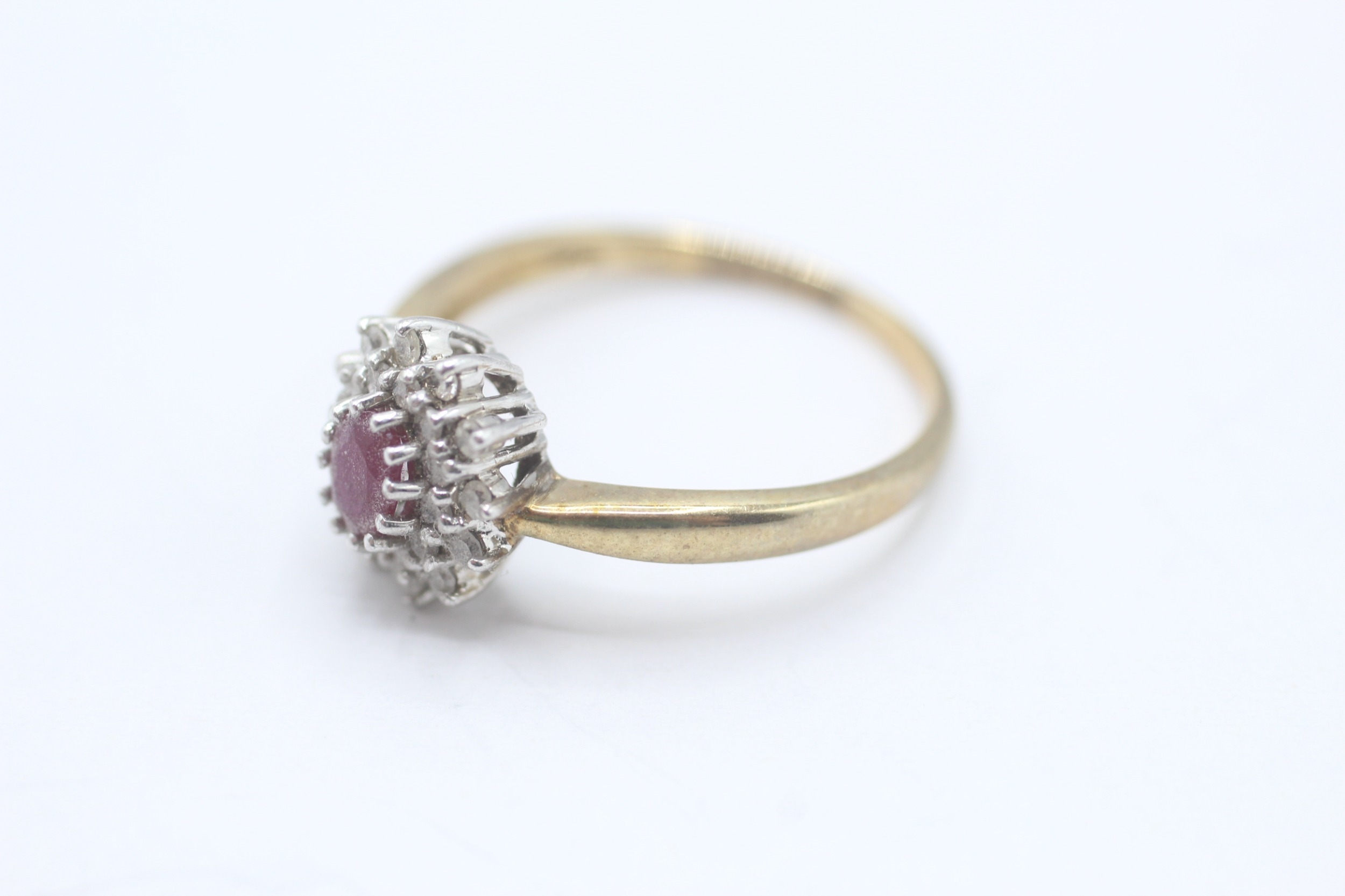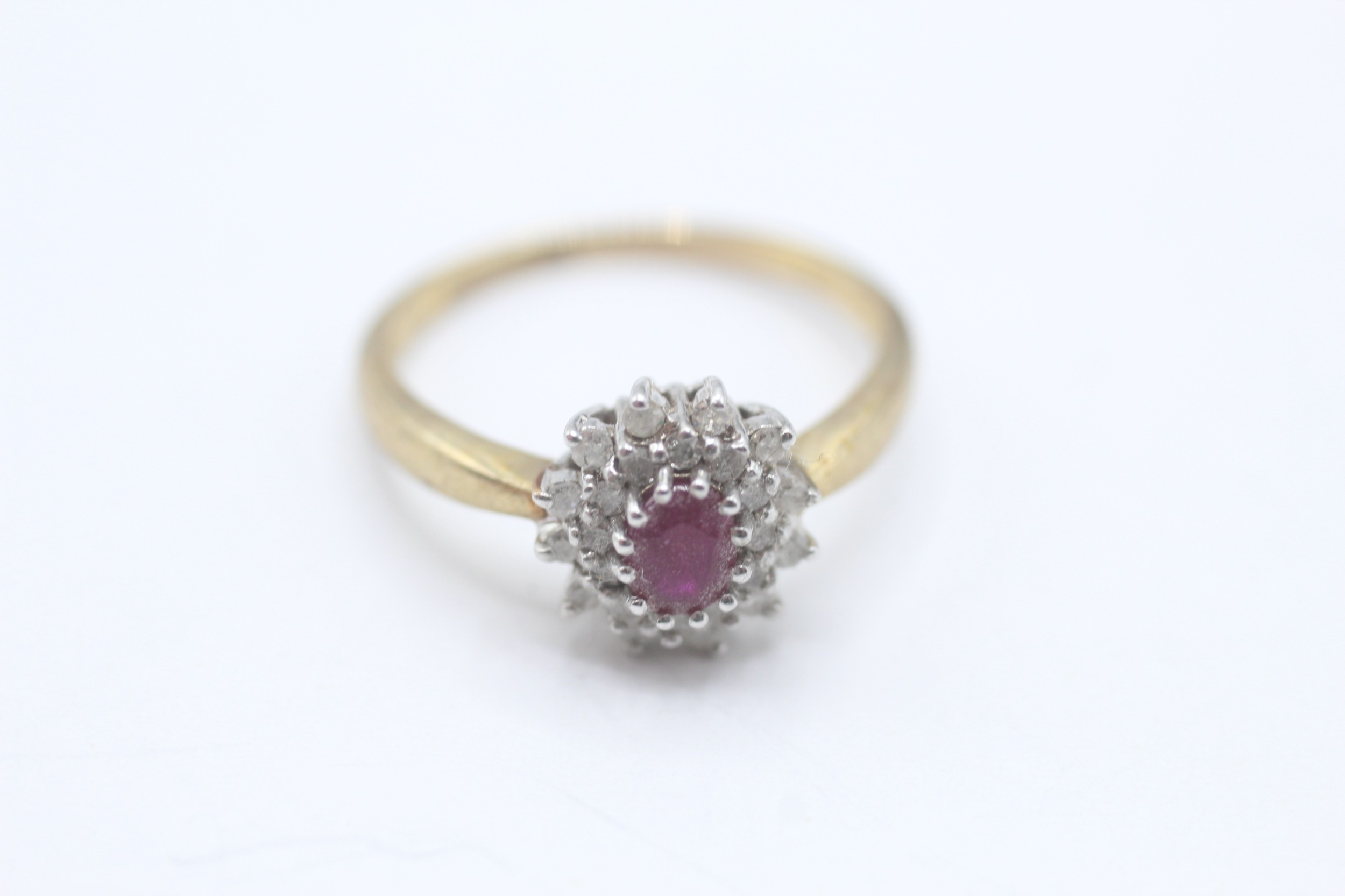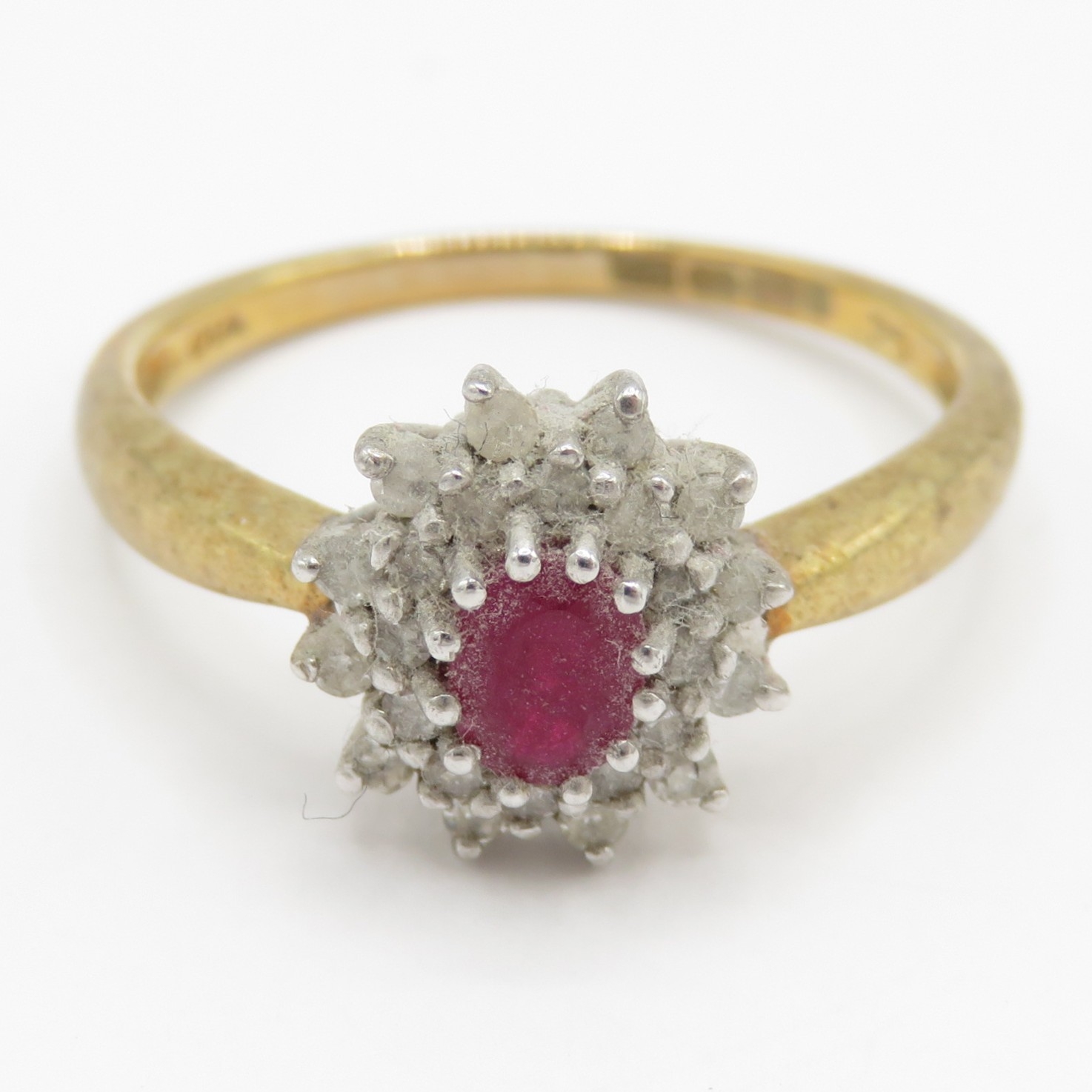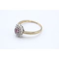 9ct gold vintage ruby & diamond cluster ring (2.4g) Size O