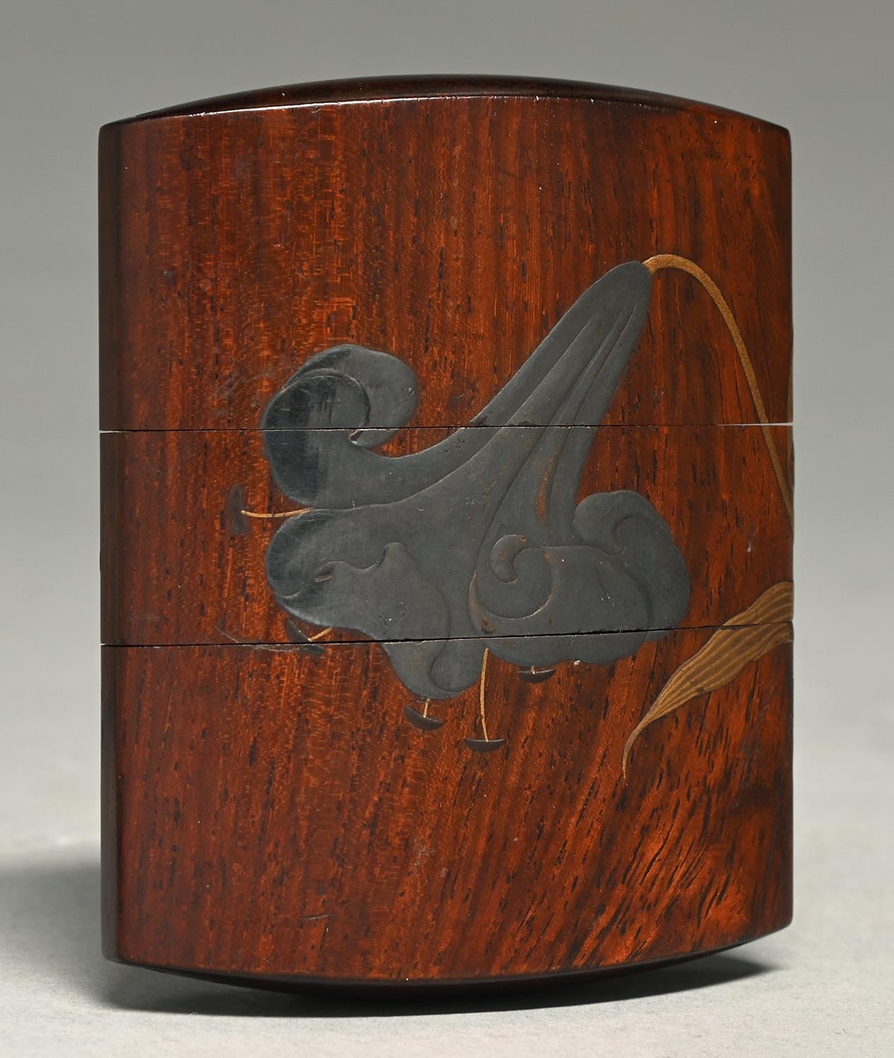 A Japanese lacquer two case inro, by Toshi (Lizuka Toyo II), 19th c, finely decorated with a lily, 78mm, gilt signature Toyo with Kao monogram